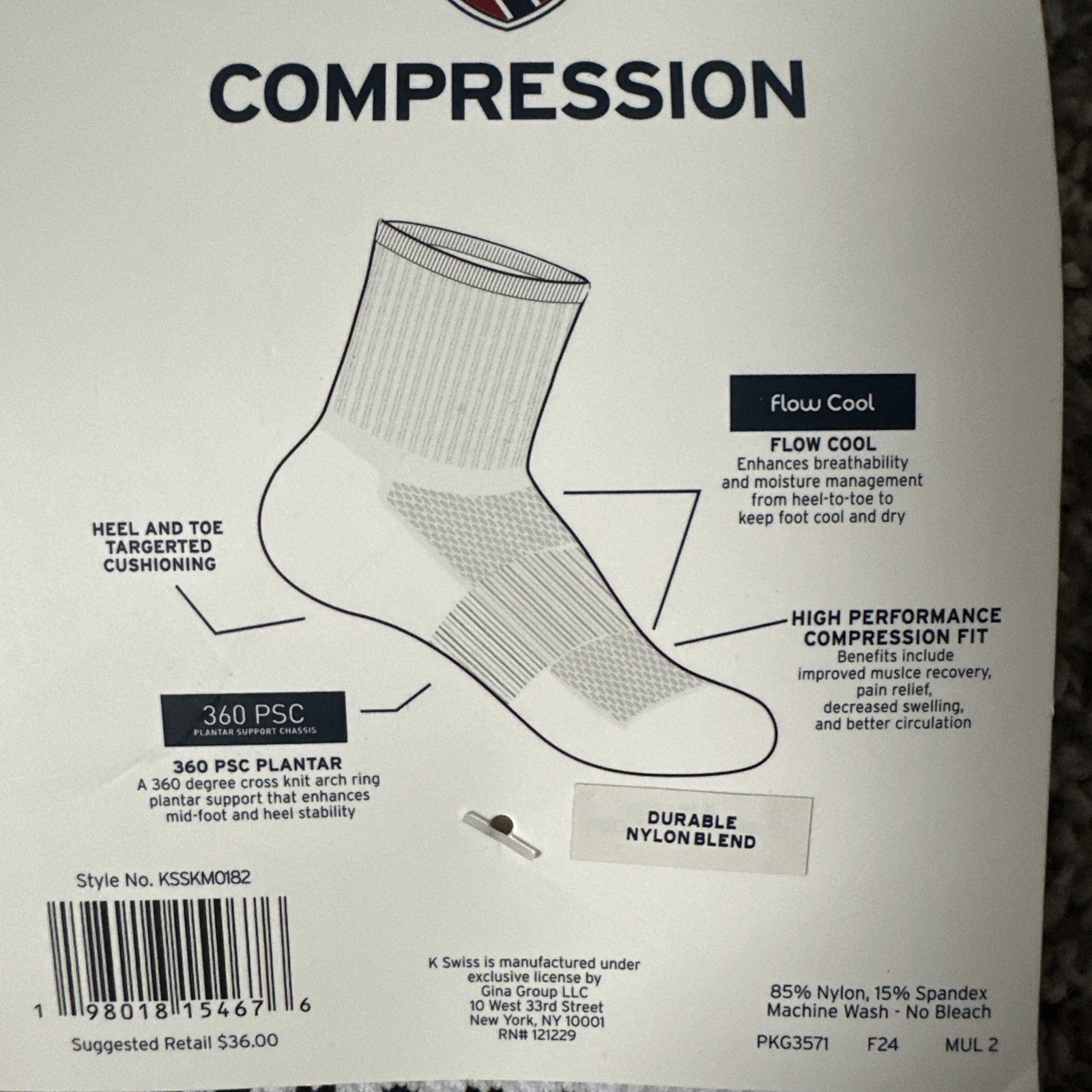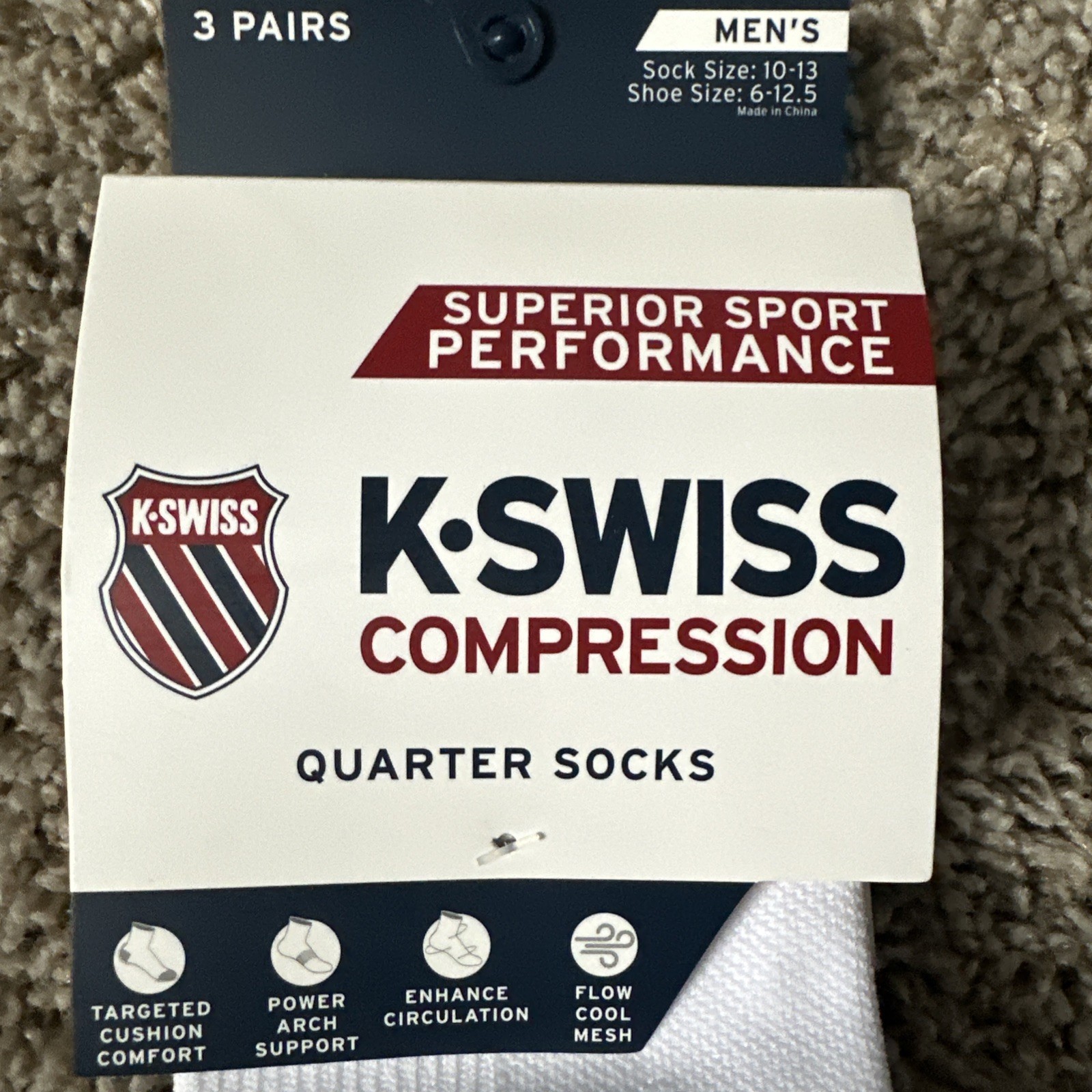 - K-Swiss Compression Men's 10-13 Superior Sport Performance Quarter Socks 3Pairs