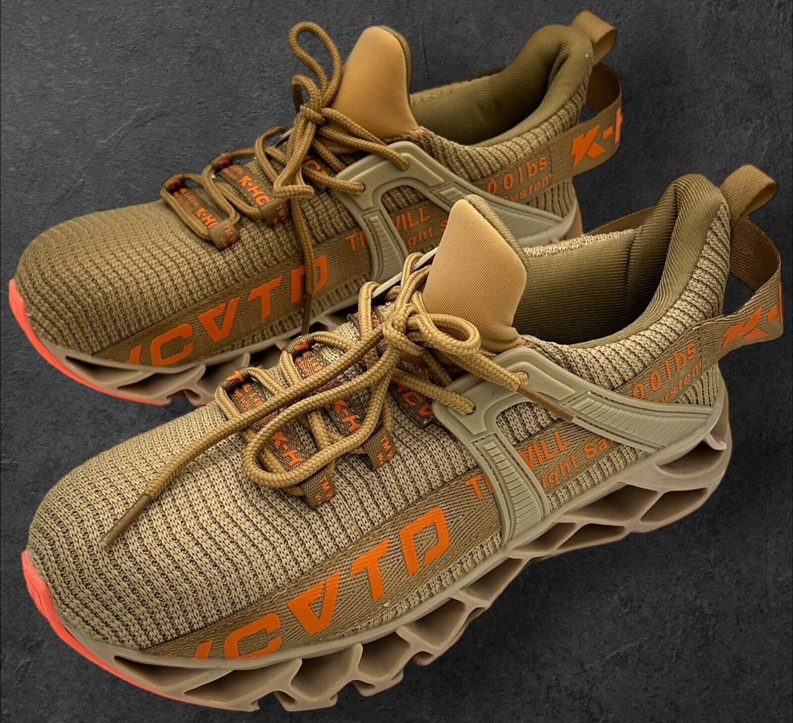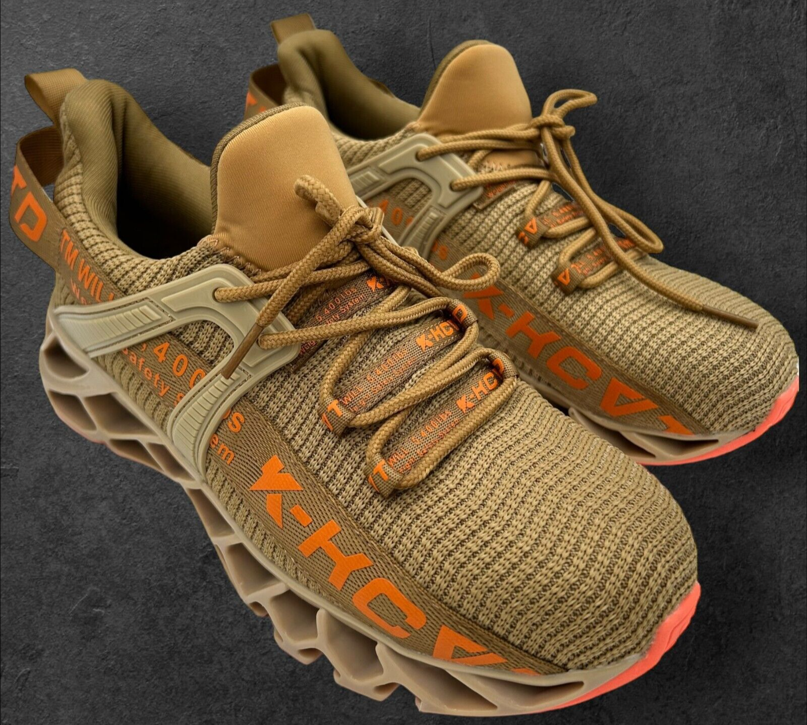 KCVTD Steel Toe Construction Safety Work Shoes Indestructible Toe Brown Sneakers Men's size 9 EU40