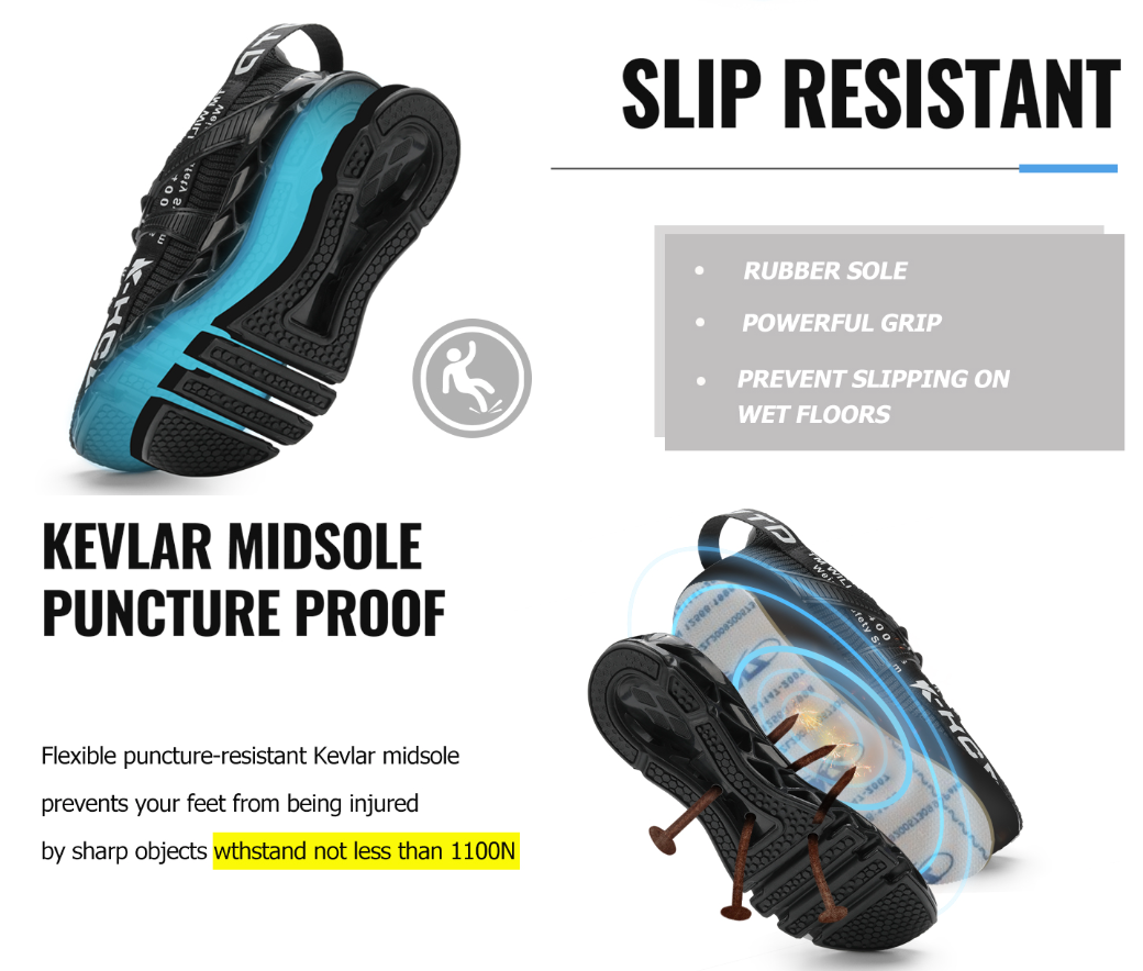 Puncture Kevlar Sole: Indestructible shoes with Kevlar-midsole to protect your feet from being punctured by sharp objects"