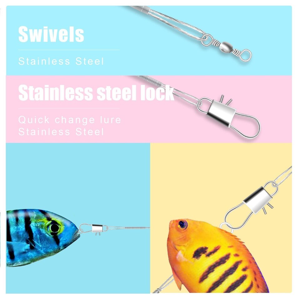 - KINBOM Fishing Leaders 60pcs Steel Wire Line w/ Swivel Buckles Silver