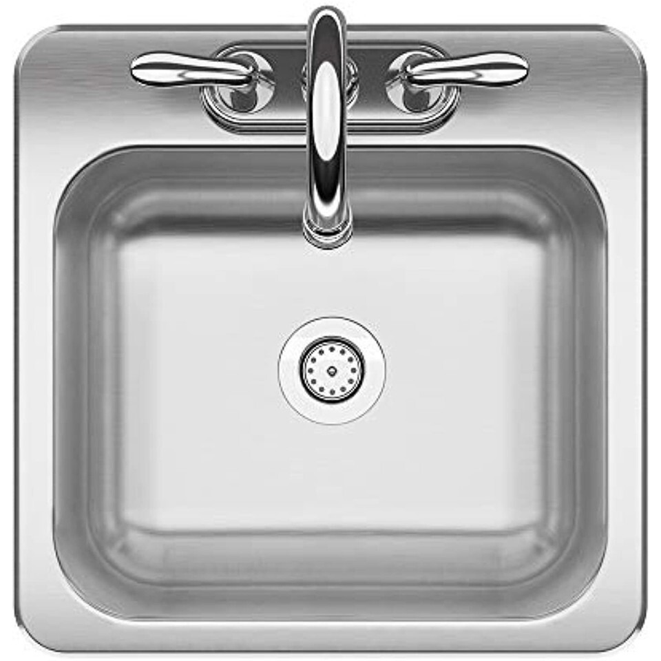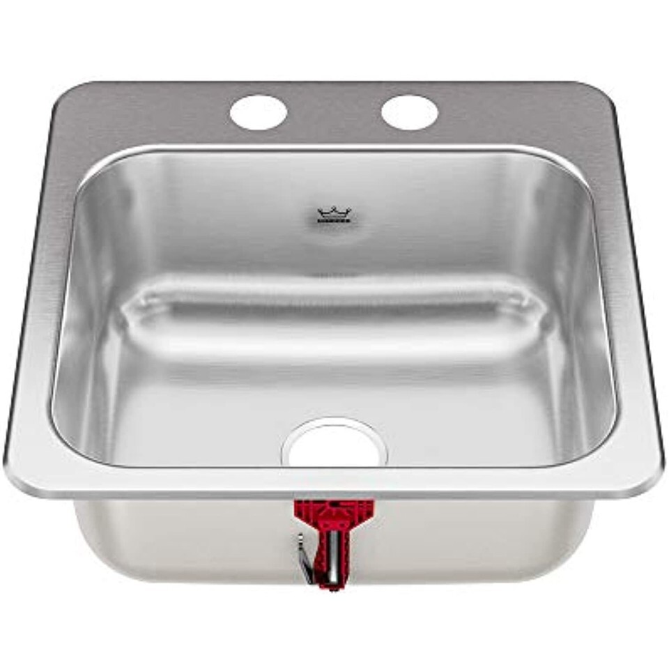 Product Description The Kindred FBFS602NKIT topmount/drop-in single bowl sink kit is perfect for a bar or laundry room. Crafted with smooth edges, this sink pairs perfectly in contemporary or transitional spaces. The included chrome faucet and strainer combined with a sturdy stainless steel sink is durable enough to handle any clean up job with ease. This topmount/drop-in sink is equipped with EZ Torque, thoughtfully designed to simplify installation. From the Manufacturer The Kindred Essentials FBFS602NKIT features a single bowl designed for use in a bar, laundry room or utility room. The sink kit includes a satin finish sink, chrome faucet and strainer, equipped with EZ Torque for a quick and easy installation process. The all-in-one sink kit measures 15-in left to right and 15-in front to back, while the bowl measures 6-in deep. The high quality top-mount sink is made in Canada of 20 gauge stainless steel and has a sound dampening pad to reduce noise and vibrations. Kindred sinks are known for their superior patent no-welding production techniques, high quality and EZ Torque installation. The minimum cabinet size for this sink is 18-inches.