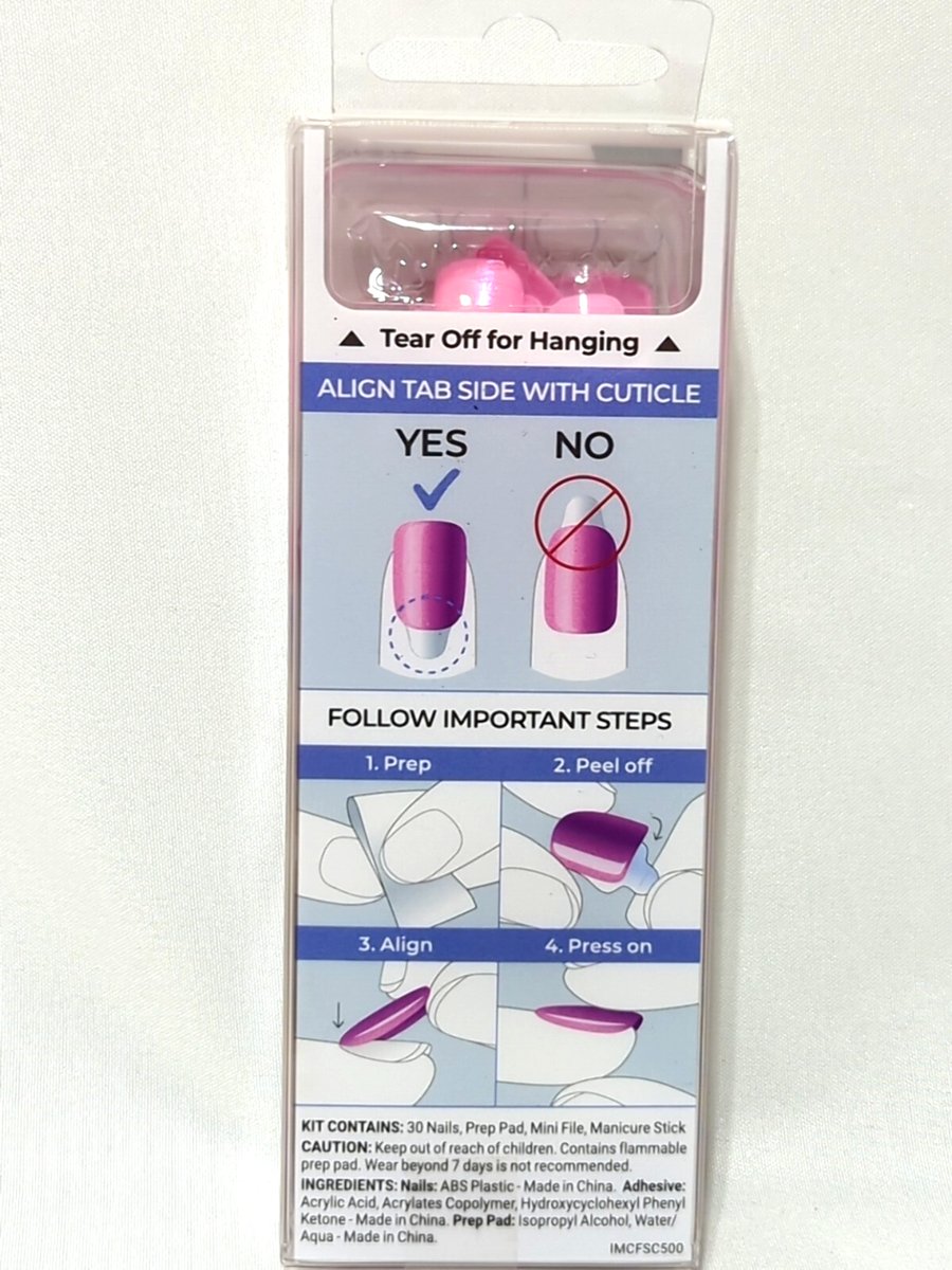 - KISS Color FX Late Night No Glue Mani Press-On Nails Pink, Short 30 Nails