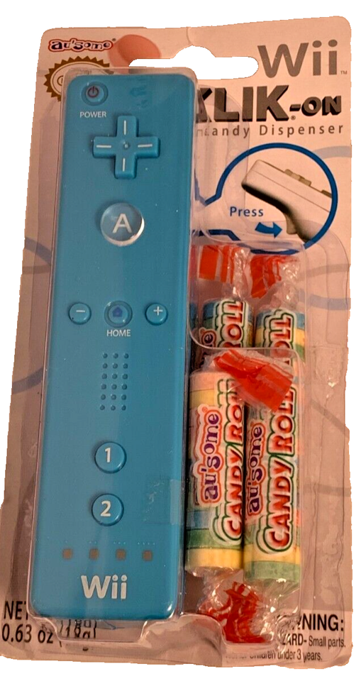 Add some fun to your collection with this RARE 2010 Au'Some Blue Nintendo Wii KLIK-On Candy Dispenser.