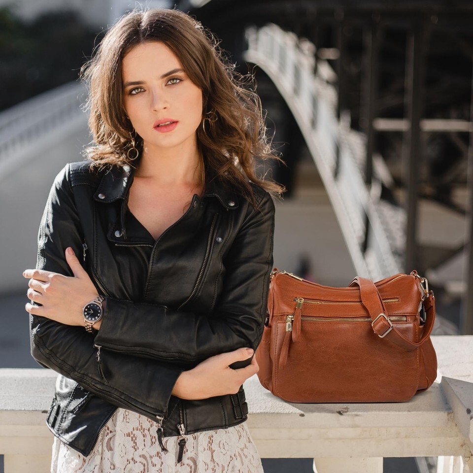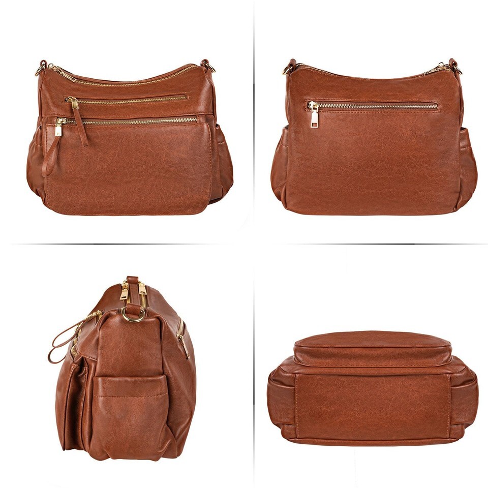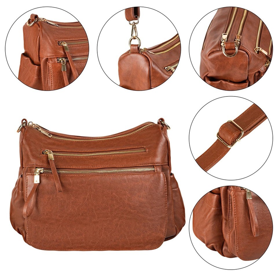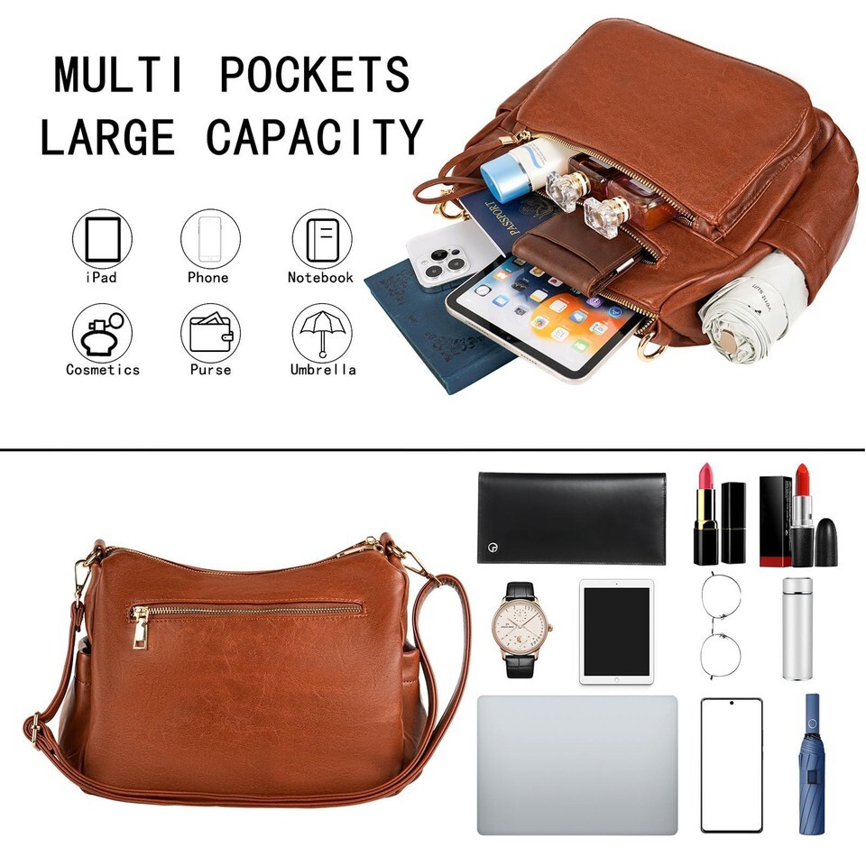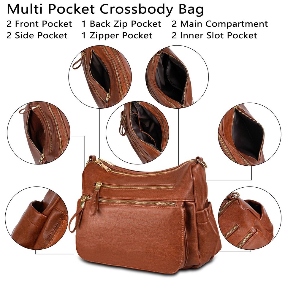 - KOGTLA Women's Crossbody Shoulder Bag Travel Satchel Brown Multi Pockets
