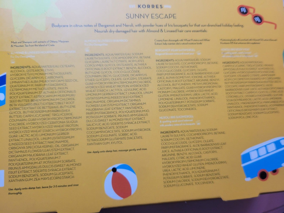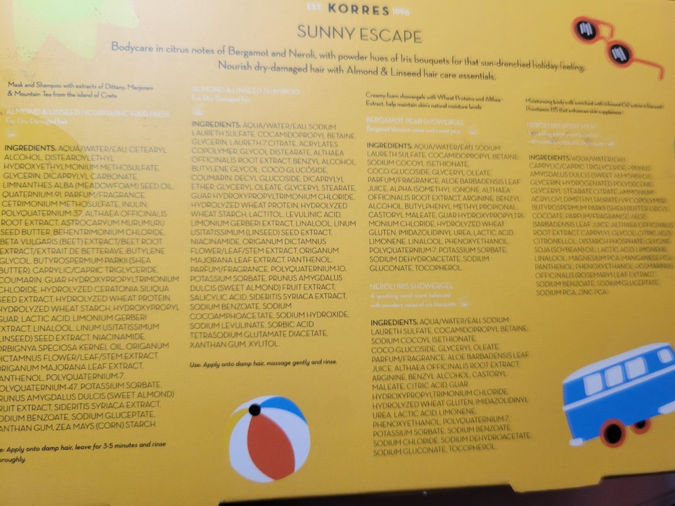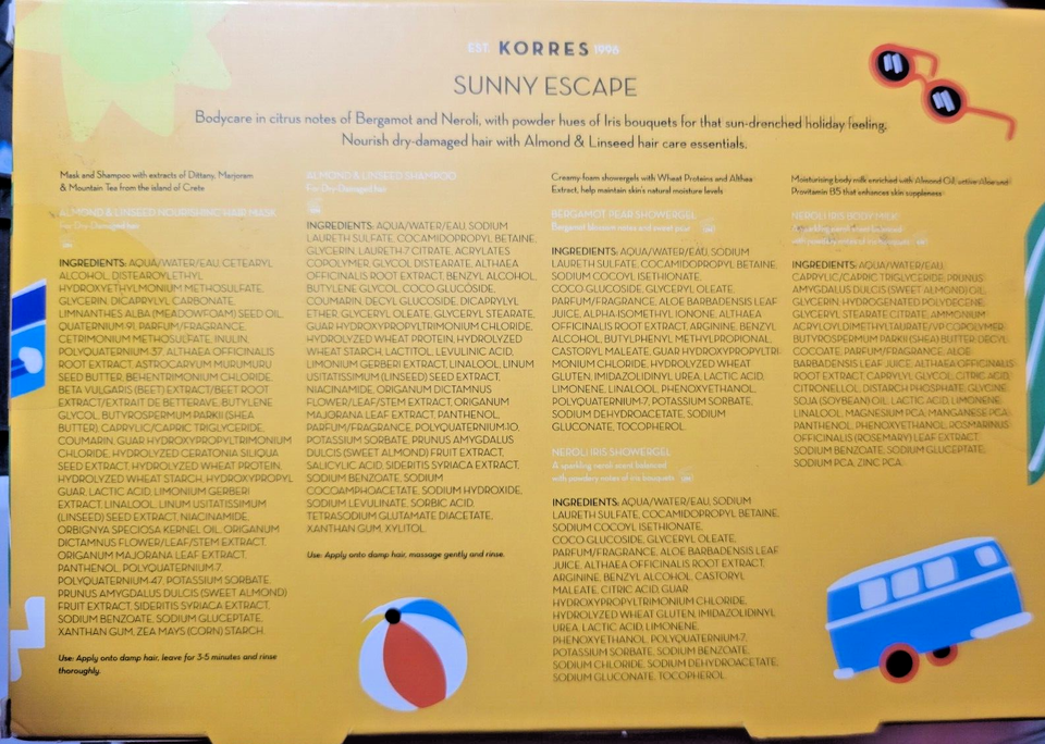 - KORRES Sunny Escape 5 Piece Set: Hair Mask, Shampoo, Showergel & Body Milk, NIB