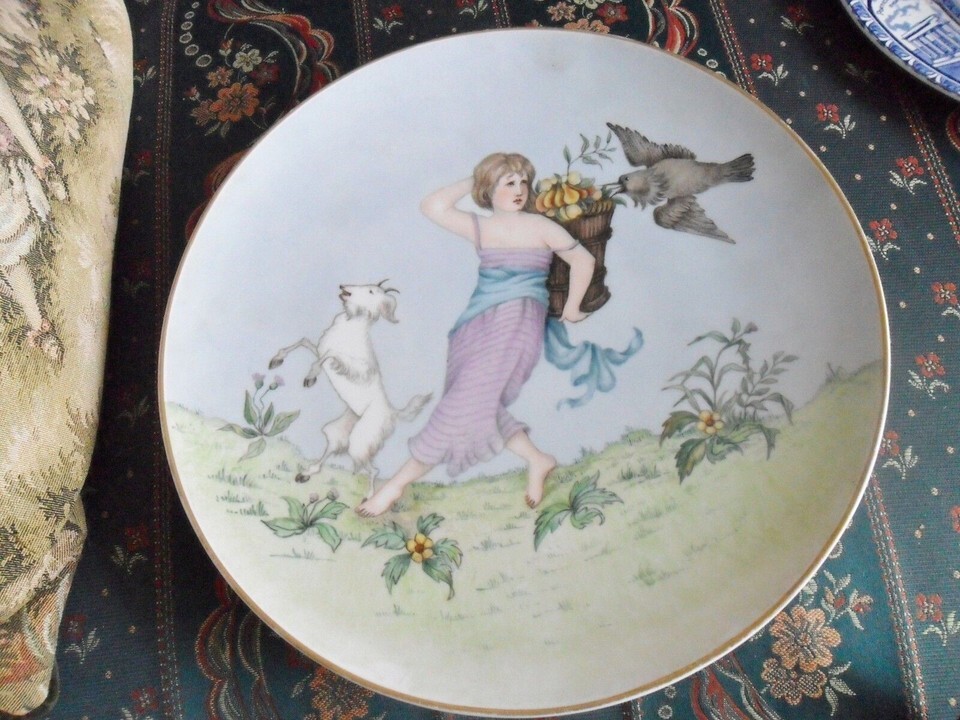 KPM platter wall decor Victorian lady in the country scepter mark c1840s 12" diam, very good condition, no damage, some light surface scratches commensurate with age