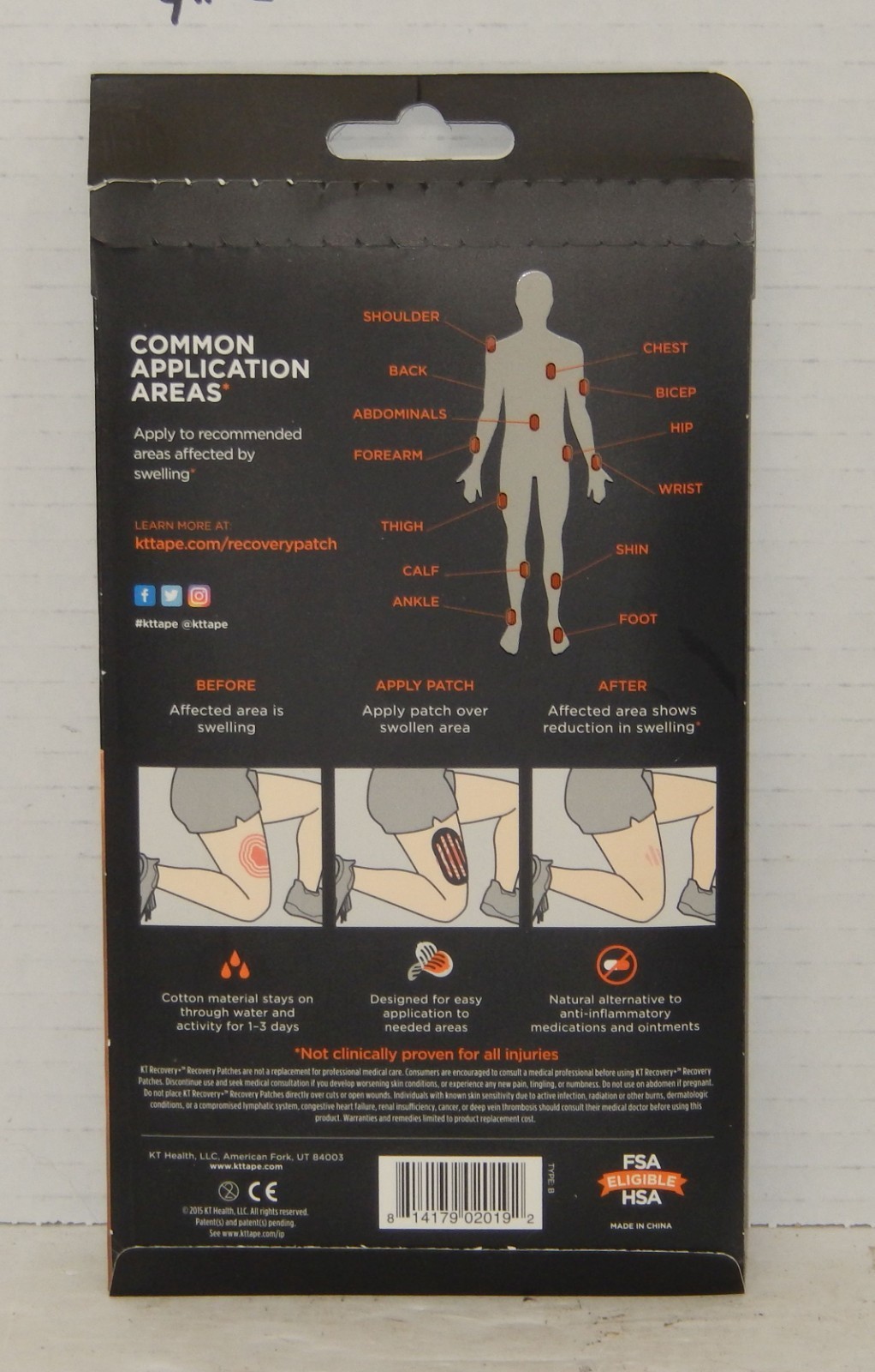 For Sale is a KT Tape Recovery Patch 4 ct - Black Swelling and Inflammation Relief. it in good condition as seen in the pictures provided what you see is what you will received. Please ask Any and All Questions prior to purchasing. Fast Same or Next day shipping with Free Delivery Confirmation within the U.S. Payment Due within 7 days of purchase (if you need more time please let us know In advance) we love to combine shipping is always a Yes and Most of the time Additional Items Ship for free.