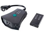 Master electrician, indoor/outdoor digital timer with remote control, 3 outdoor remote control, countdown function automatically turns power off 2, 4, 6, or 8 hours later, wireless remote control of all functions on transmitter or control manually on the receiver, remote works up to 80' away, weather resistant housing protects connected lighting, transmitter power input, DC 12V alkaline battery, size A23, included, not activated by photocell, can not be used with other electrical-timed items/products, 8 channel codes for the remote channels "a" through "H", do not use with fluorescent lights or with devices that have electronic switches, timer controls all 3 outlets, electrical rating: 125VAC 60Hz 15A general purpose 15A resistive 1000W tungsten 500VA electronic ballast 1/2 HP120 vac 60 Hz 8.3A ballast, UL/CUL listed.