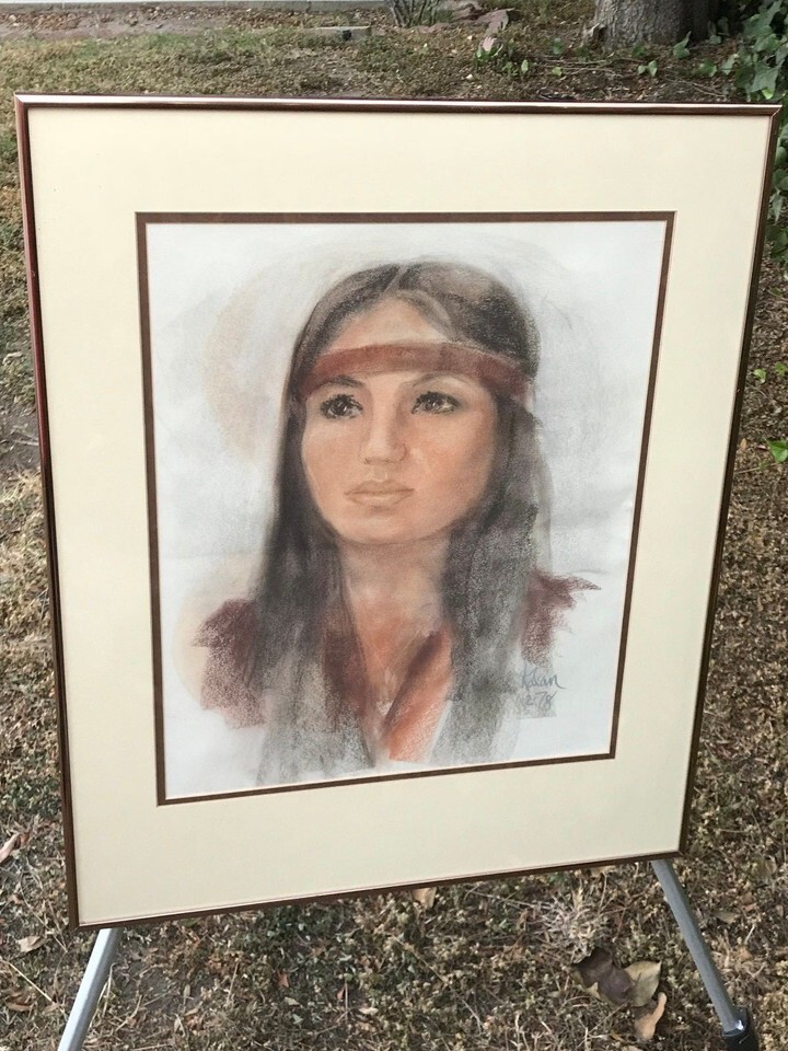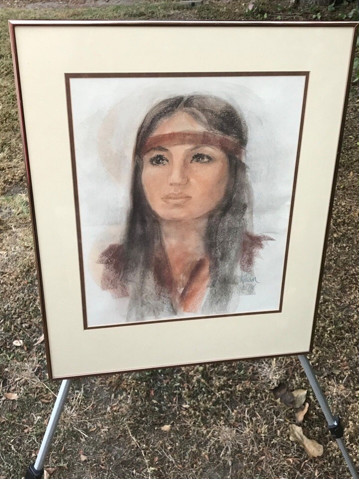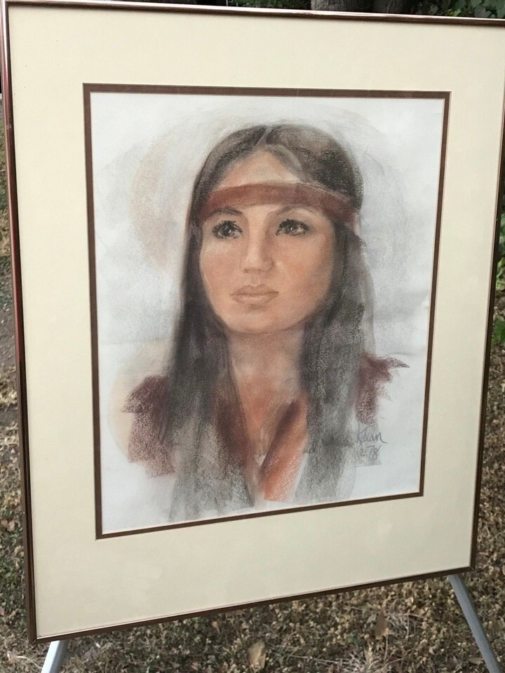 KALAN BRUNINK Original 1978 MODERN OIL PASTEL VINTAGE MID CENTURY PORTRAIT
