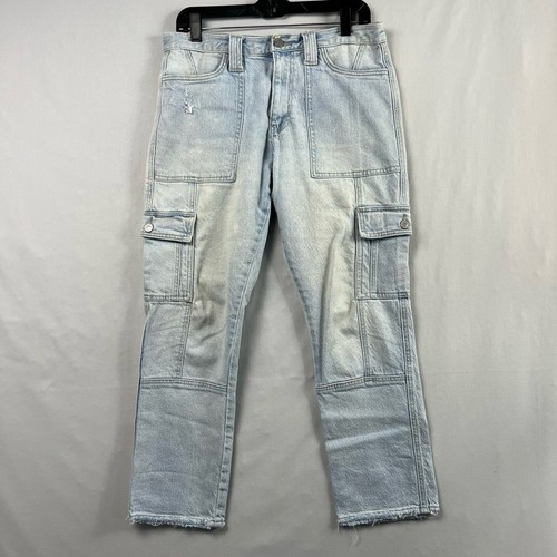 KanCan Womens Light Wash Cargo Jeans With Frayed Hem & Pockets Size W11 29