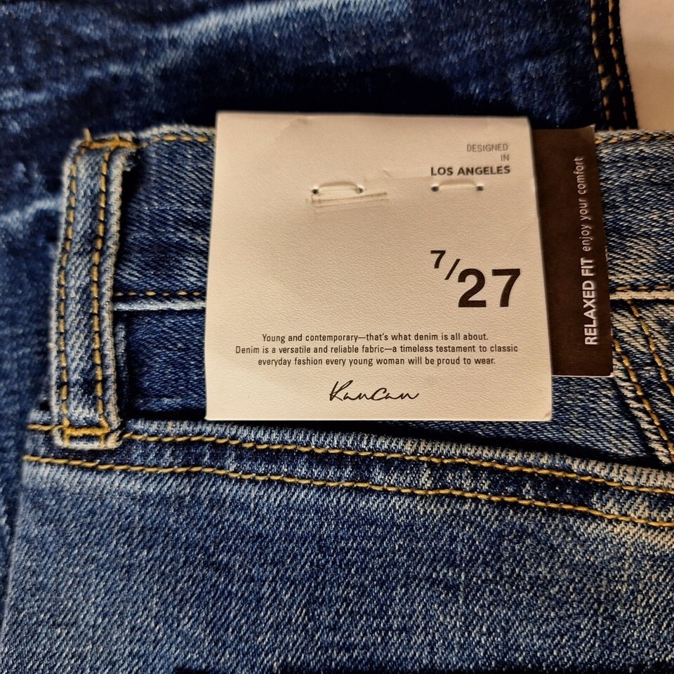 - Kancan Mordekaiser High Rise Dad Jeans Size 7/27 Dark Wash Distressed Hem