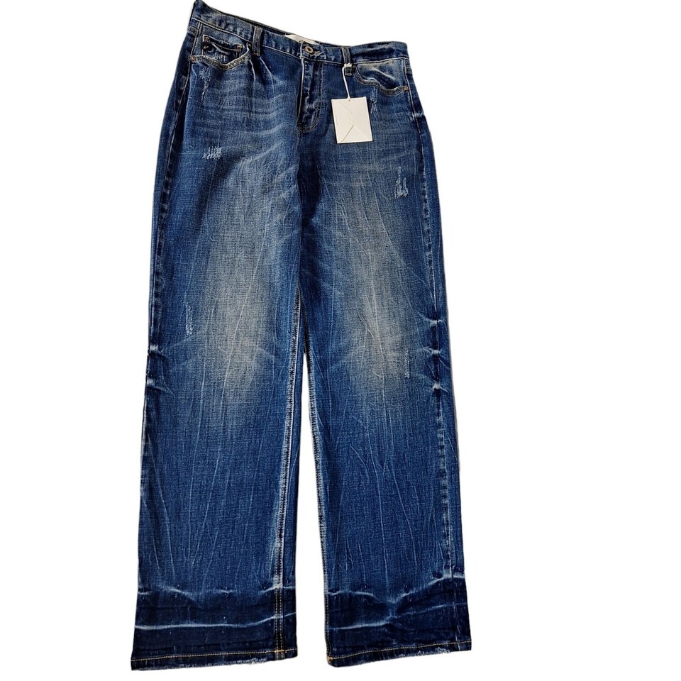 Kancan Mordekaiser High Rise Dad Jeans Size 7/27 Dark Wash Distressed Hem