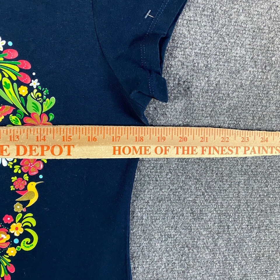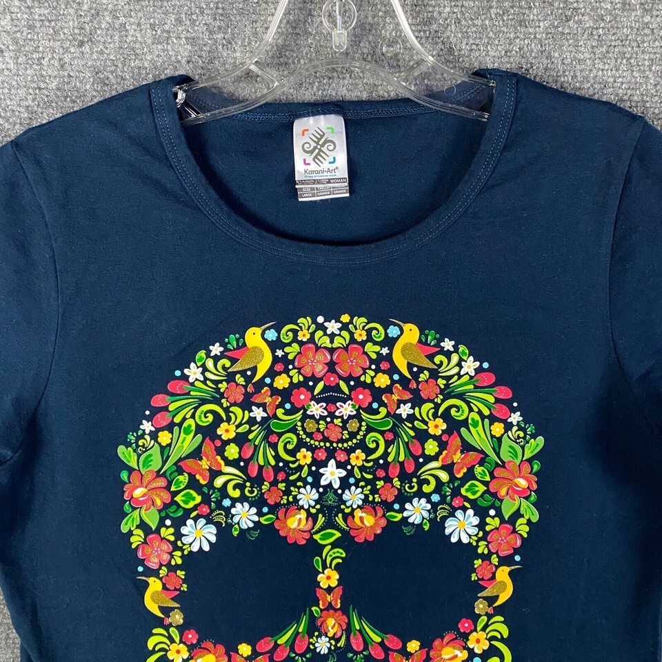 - Karani Art Shirt Women's Large Aztec Skull Floral Blue Short Sleeve Cotton
