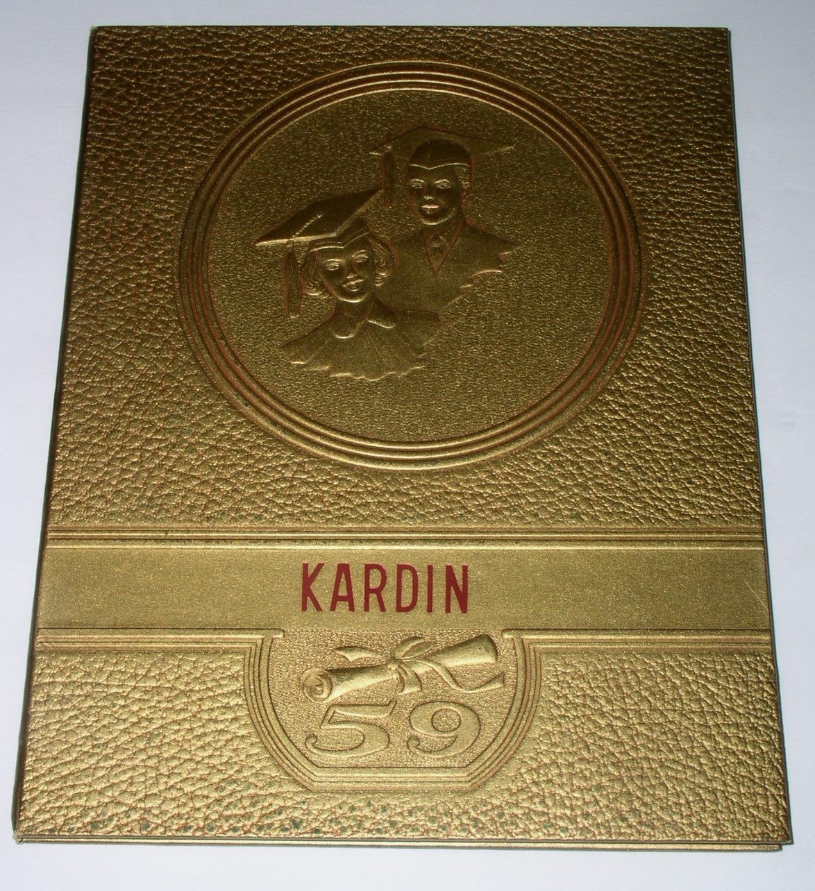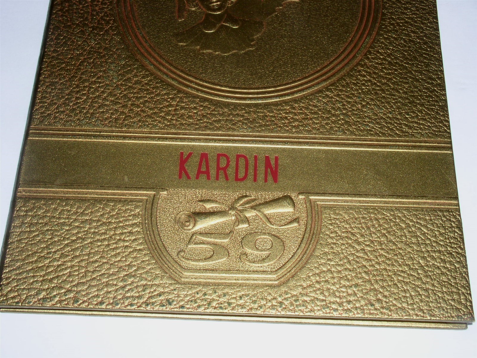 This is a vintage high school yearbook entitled, "Kardin 59". Spencer High School, Spencer South Dakota.