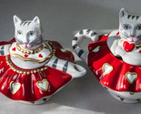 Karen Rossi Cat Creamer & Sugar Bowl w Lid Art Pottery Hearts Silvestri
