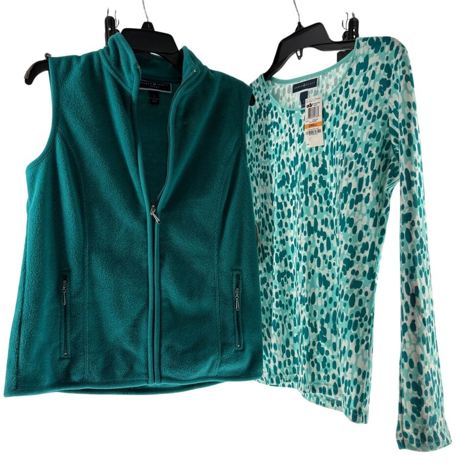 - Karen Scott Womens Small Teal Fleece Vest & Leopard Print Top Set Small