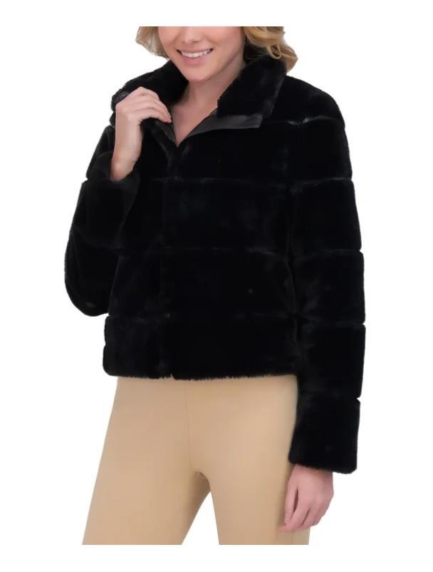 - Karl Lagerfeld Womens Jacket Black Pockets Faux Fur Standup Collar Lined