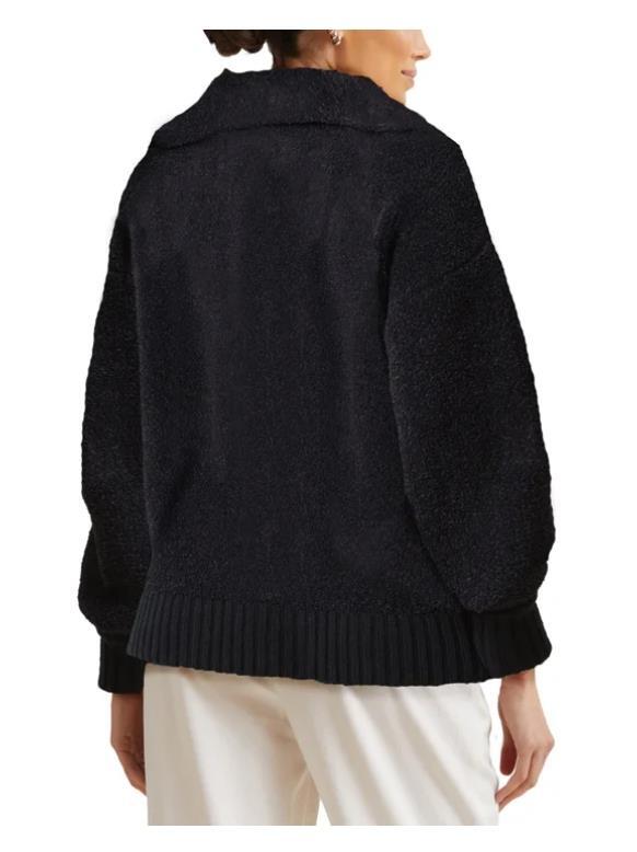Kashwere Womens Jacket Black Full-Zip Long Sleeves Oversized Heavyweight Soft