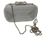 Kate Landy Silver Metallic Hard Shell Small Rectangular Purse with Bow Top