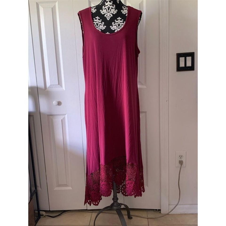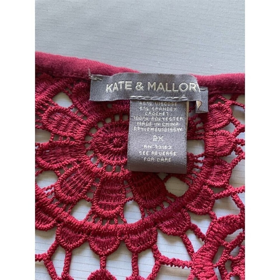 This Kate Mallory dress in size 2XL features a chic hi-low style with elegant lace detailing. The sleeveless design is crafted from a comfortable stretch knit material, perfect for the fall season. It comes in a vibrant red color and is easy to wear with a pullover closure. The dress is machine washable for convenient care. Pre-owned condition. Keywords: Kate Mallory, 2XL, hi-low dress, red dress, sleeveless, stretch knit, lace detailing, fall fashion, elegant, women's clothing, pullover dress, machine washable.