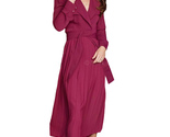 - Kate Middleton Inspired Burgundy Belted Long Sleeve Pleated Midi Trench Dress