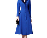Constructed using a fabric blend of 70% cotton, our affordable yet inspired version showcases flap pockets, generously sized covered buttons, a gracefully flared mid-length skirt, and an extra detail of a blue velvet tuxedo collar. It comes with a complete lining for added comfort and elegance.