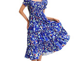 Kate Middleton Inspired Floral Blue Square Neck Shirred Waist Fit-&-Flare Dress