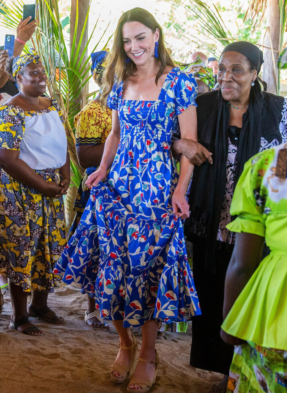 Get the Princess of Wales' beach-ready summer look with our shirred floral midi dress in blue.