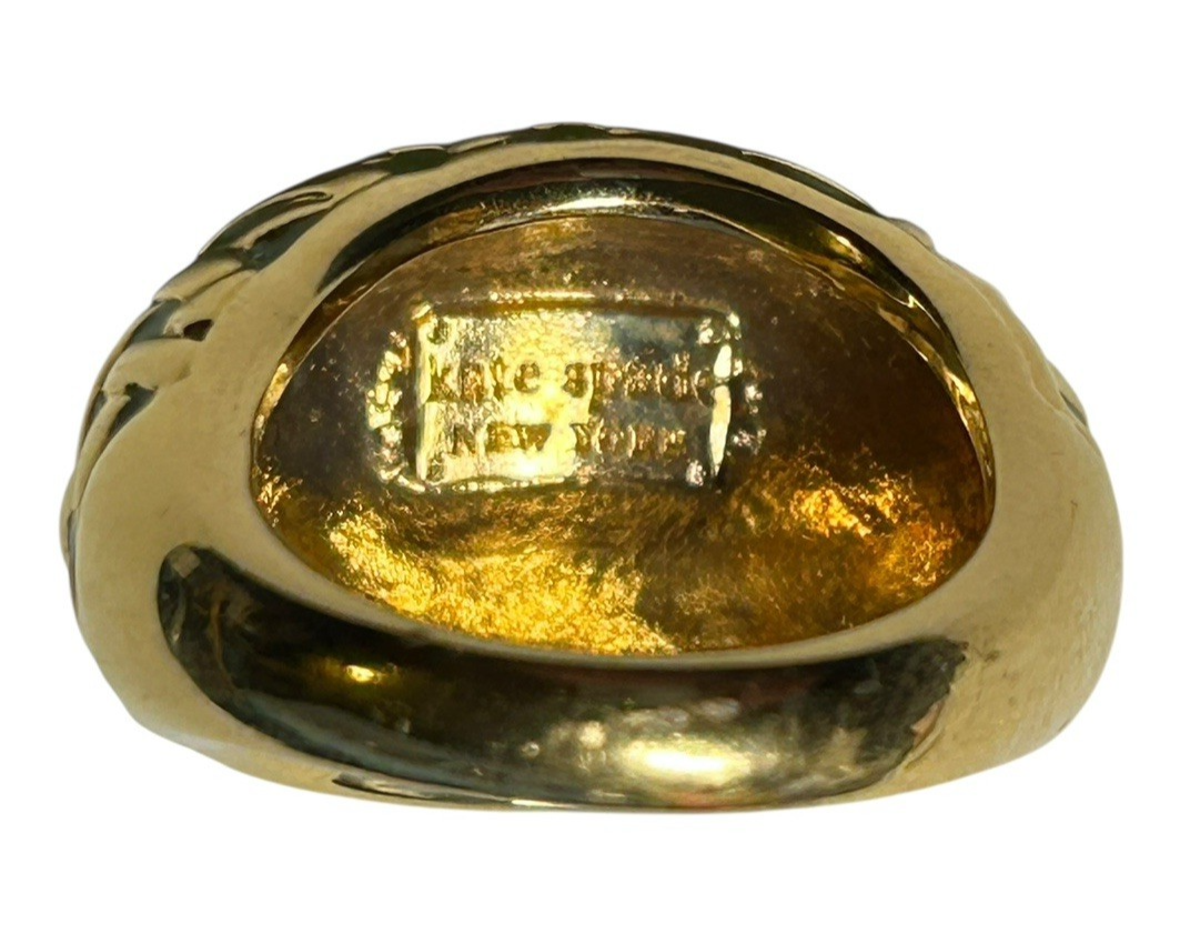 Kate Spade New York Green Oval Emerald Glass Cocktail Ring Gold Color Size 7 1/2