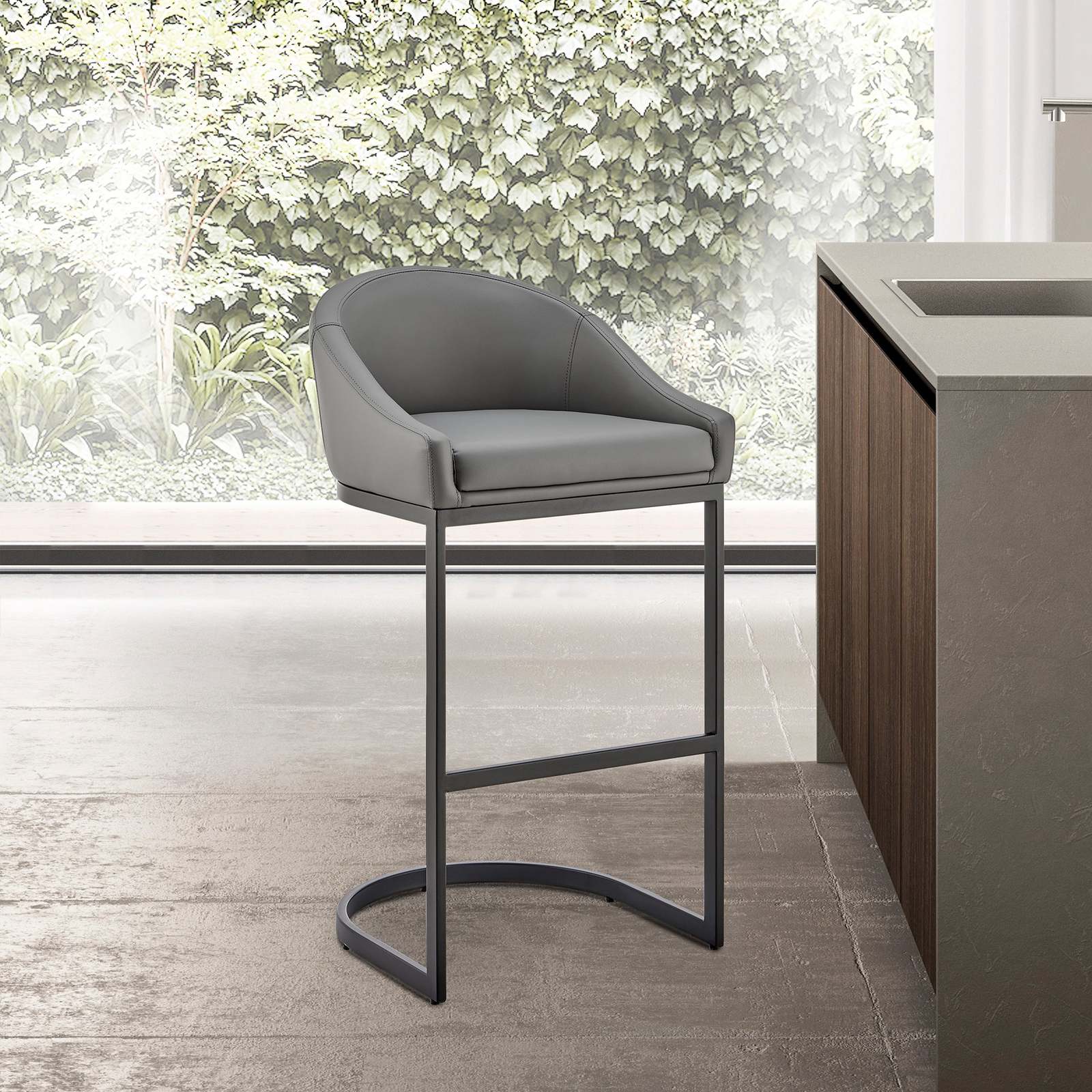 - Katherine Counter Stool: Black Metal, Gray Faux Leather