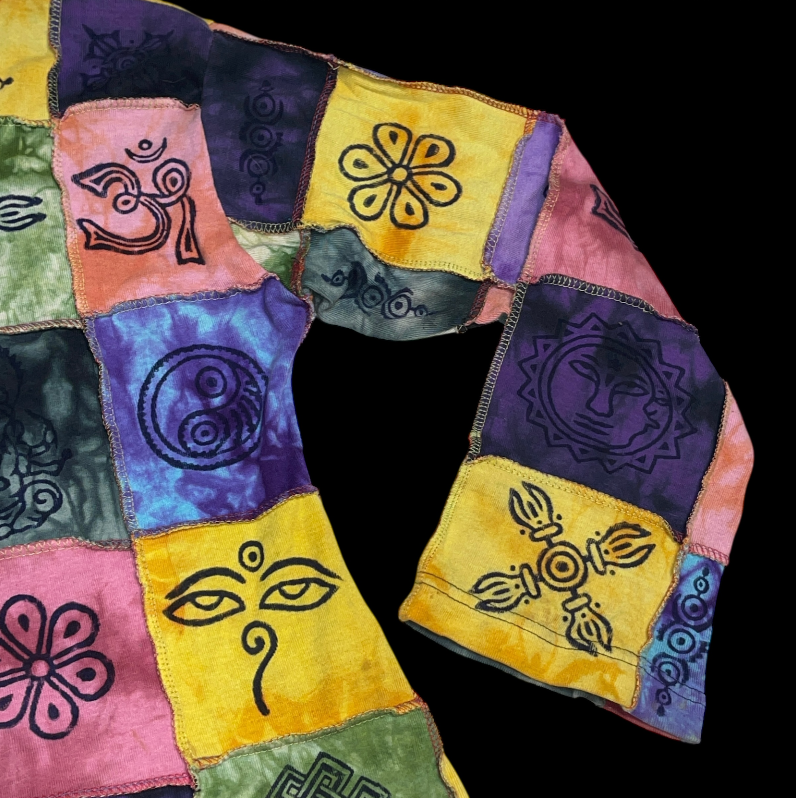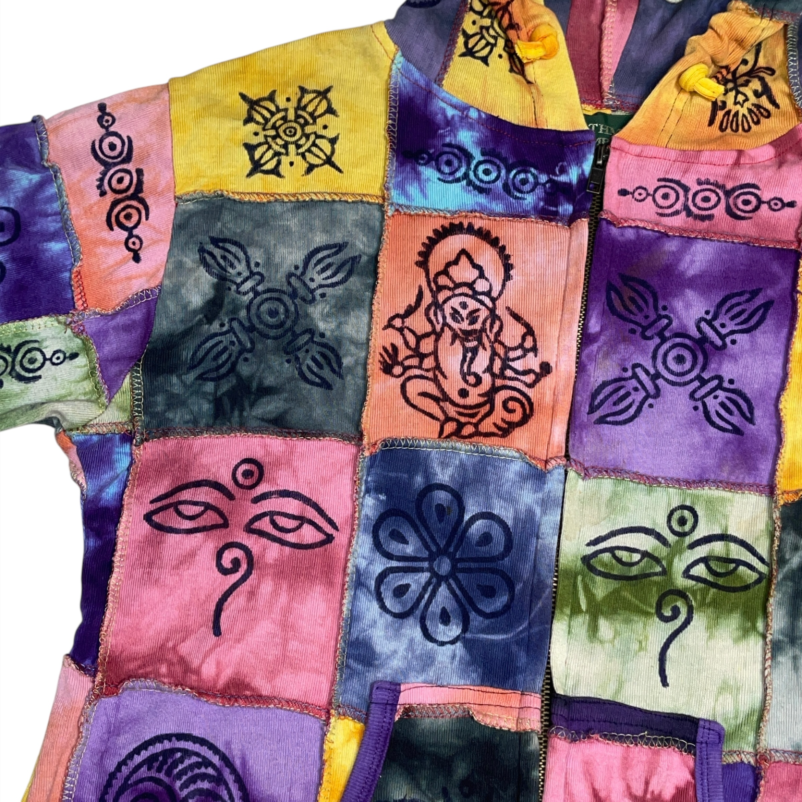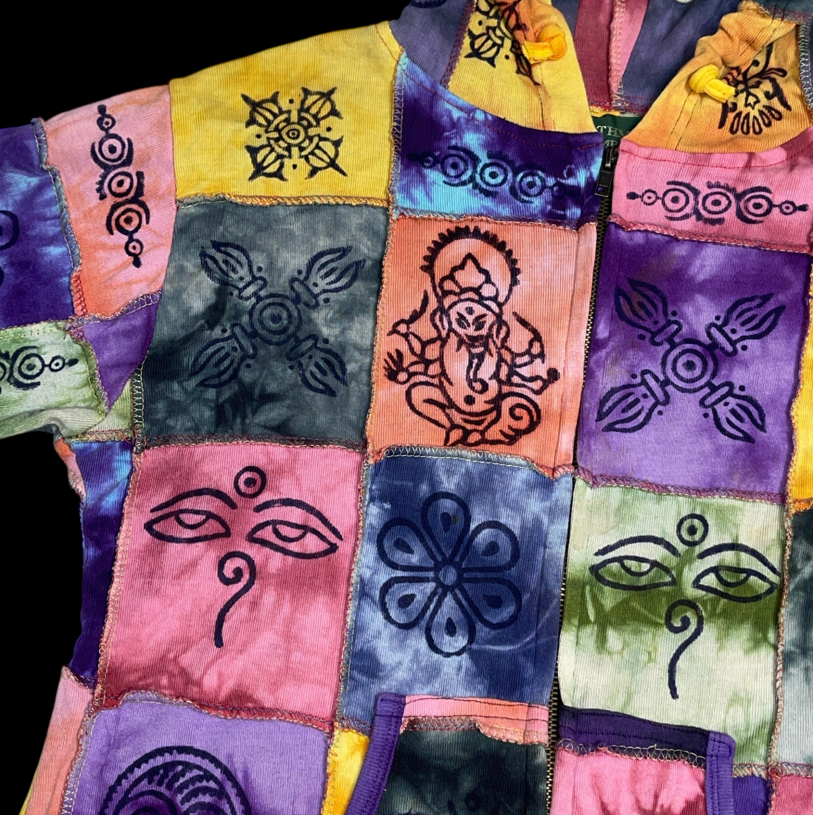 Kathmandu Imports patchwork Y2k Sweater Jacket Medium Hippie Boho Hoodie Coat