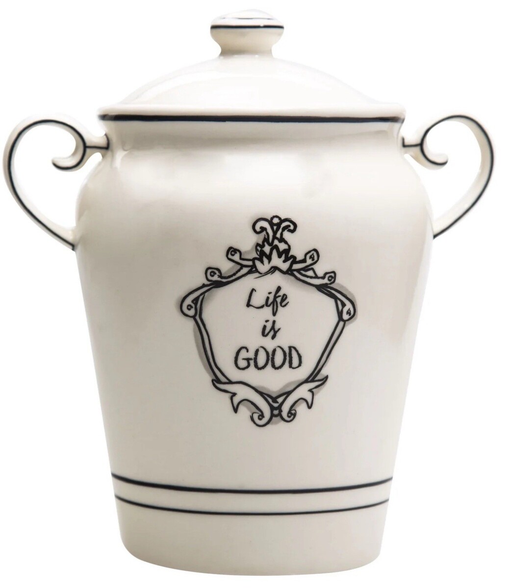 KATIE MANDY Home Essentials LIFE IS GOOD Ceramic Lidded Kitchen Canister Pantry