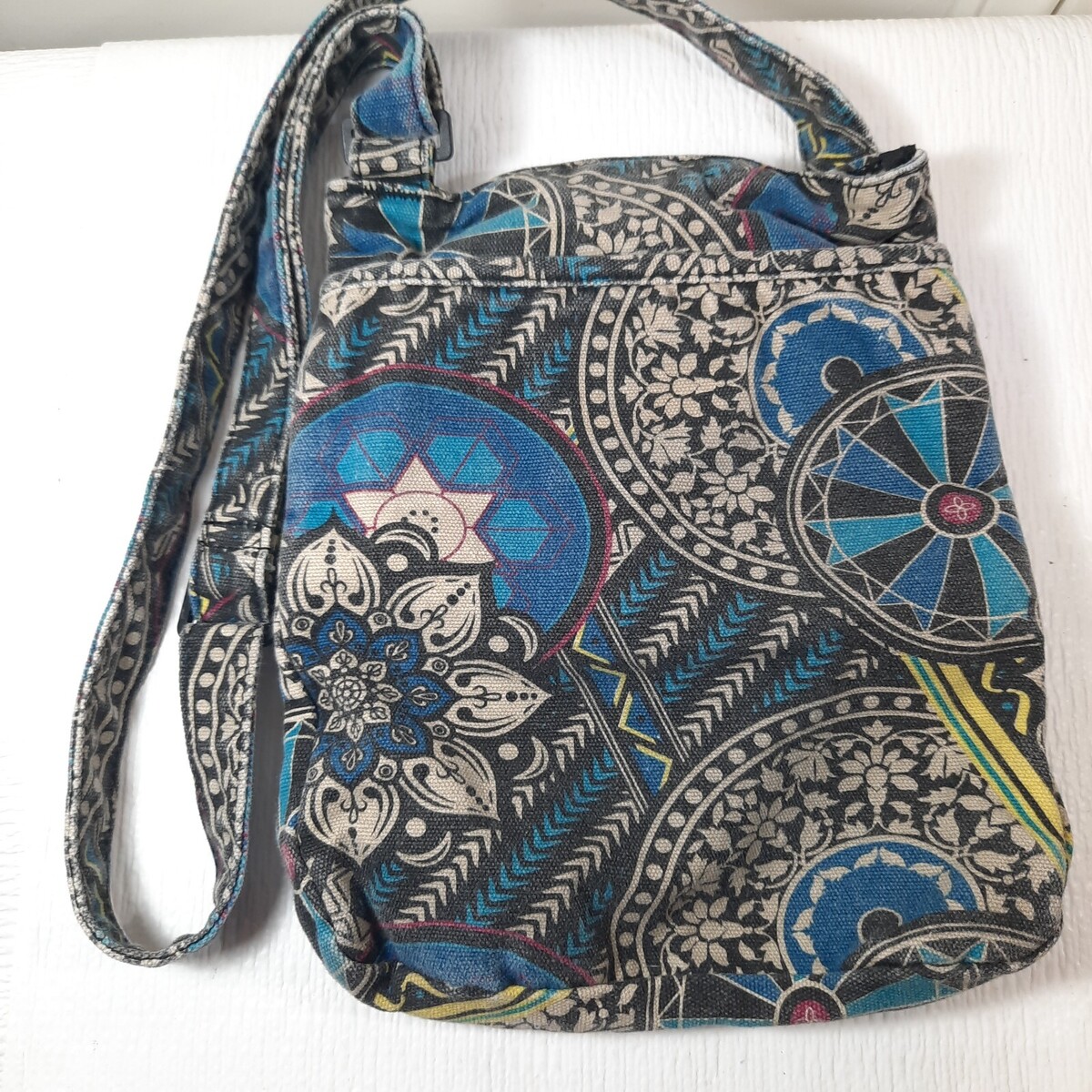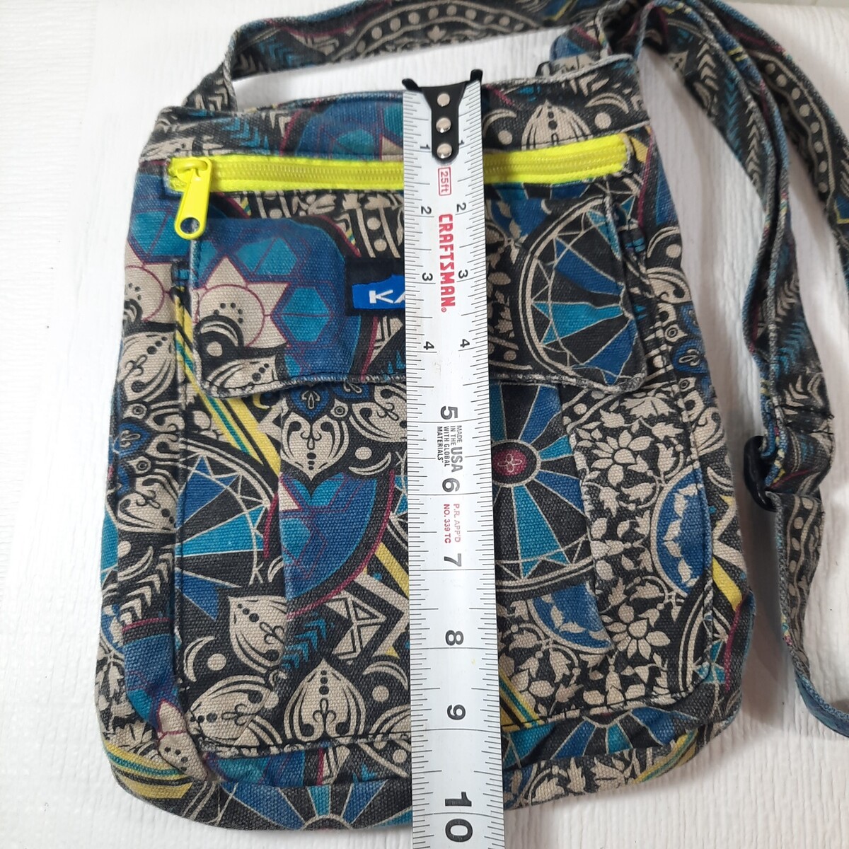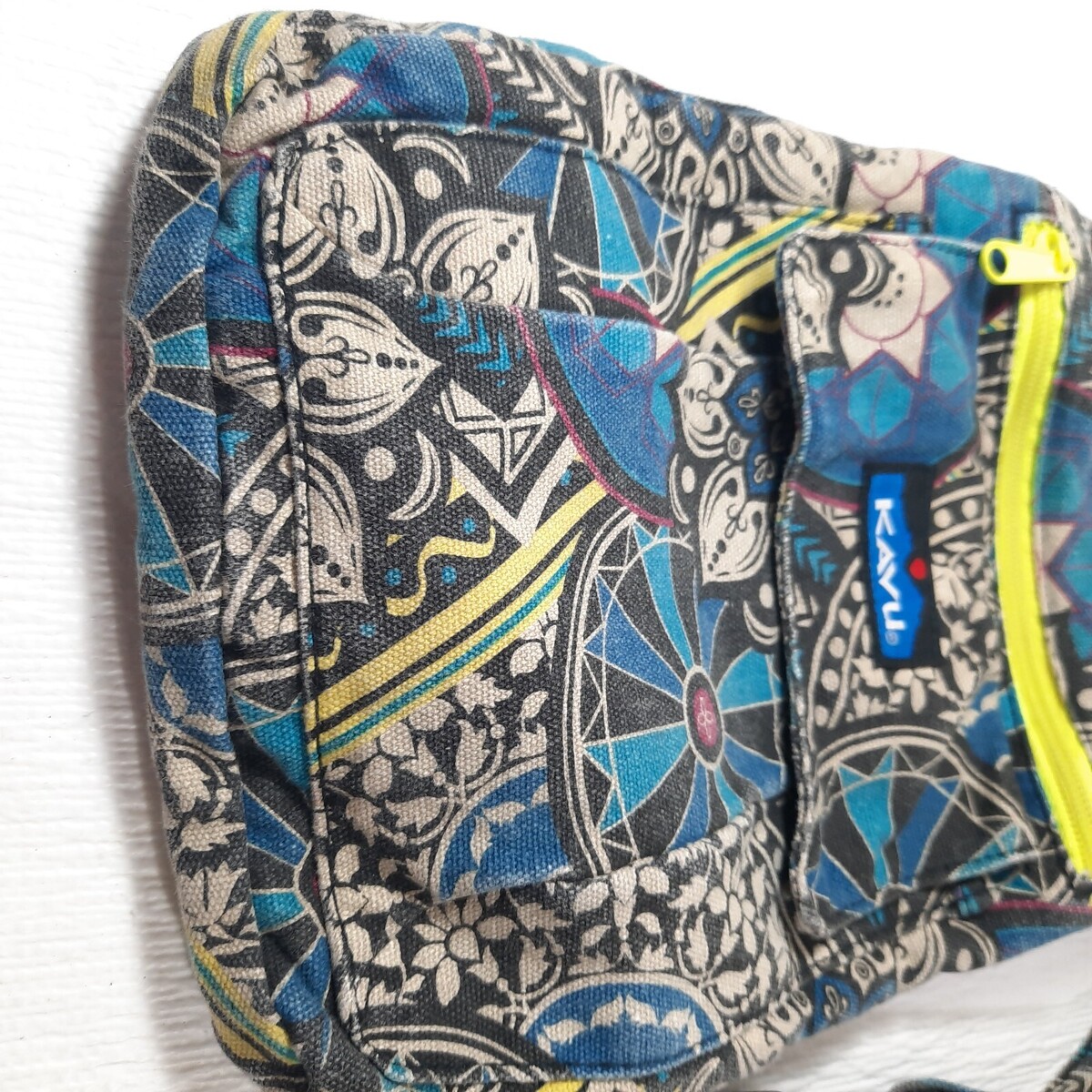 - Kavu Crossbody Keeper purse blue black medallion Adjustable Strap Canvas Bag