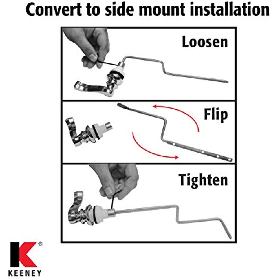 Keeney?s PP836-74CPL Universal Fit Toilet Handle Tank Flush Lever is the perfect accessory to make your bathroom look cohesive. The decorative latch door style design is made of durable metal construction for long-lasting use. The 8-inch bendable brass arm has holes for 4-inch, 6-inch, and 8-inch applications, and is designed to fit front-, side-, or angle-mount toilets. The tank lever is available in a variety of finishes to match existing decor: polished chrome, brushed nickel, and oil rubbed bronze.