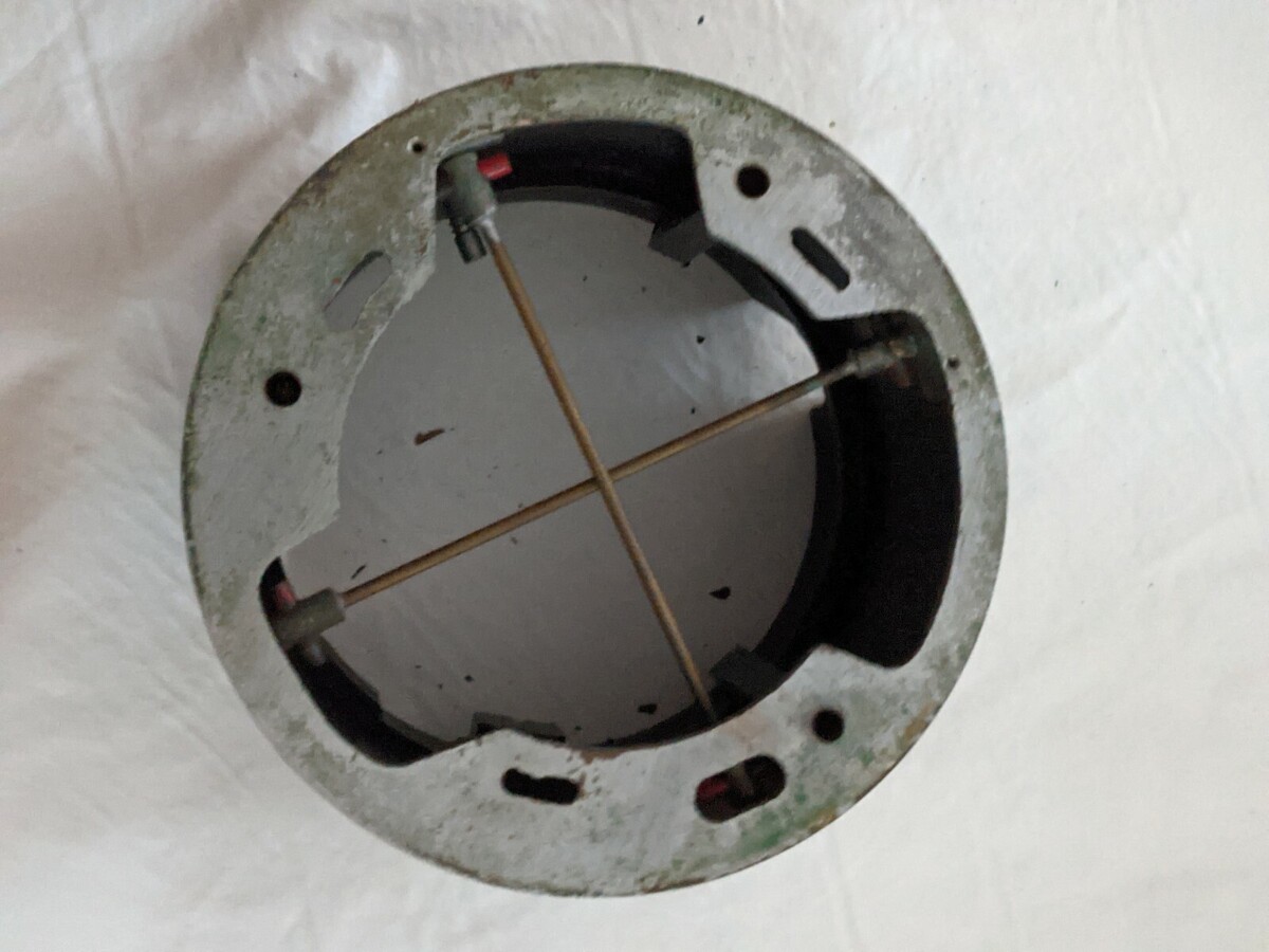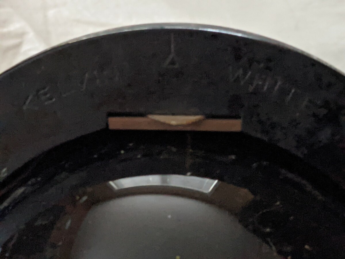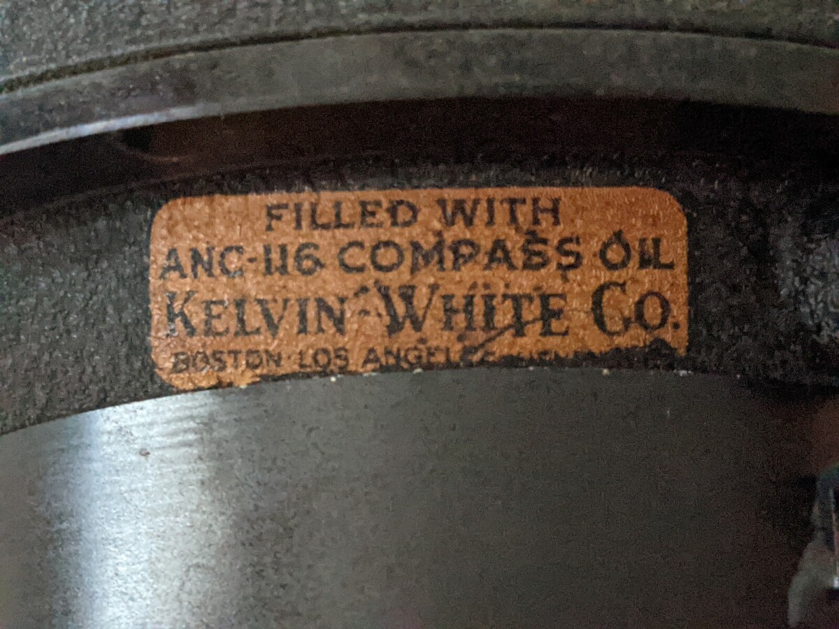 The manufacturer indicated on the dial says Wilfrid O. White and Sons, Inc. New York-Boston-Baltimore. It appears the light cables were cut just where they exit the housing when the compass was removed but all the electrical components are present including at least one bulb which can be seen above and thru the glass in the top housing. I have not tested the lights as I am not a compass expert. It appears that the compass should release from the housing with a pull on a spring loaded pin at the front of the housing. Pull the pin and the compass is free of the housing but hangs up after moving upward 1/8". I assume there is some trick to full removal and I was unwilling to force it out so didn't proceed any further.