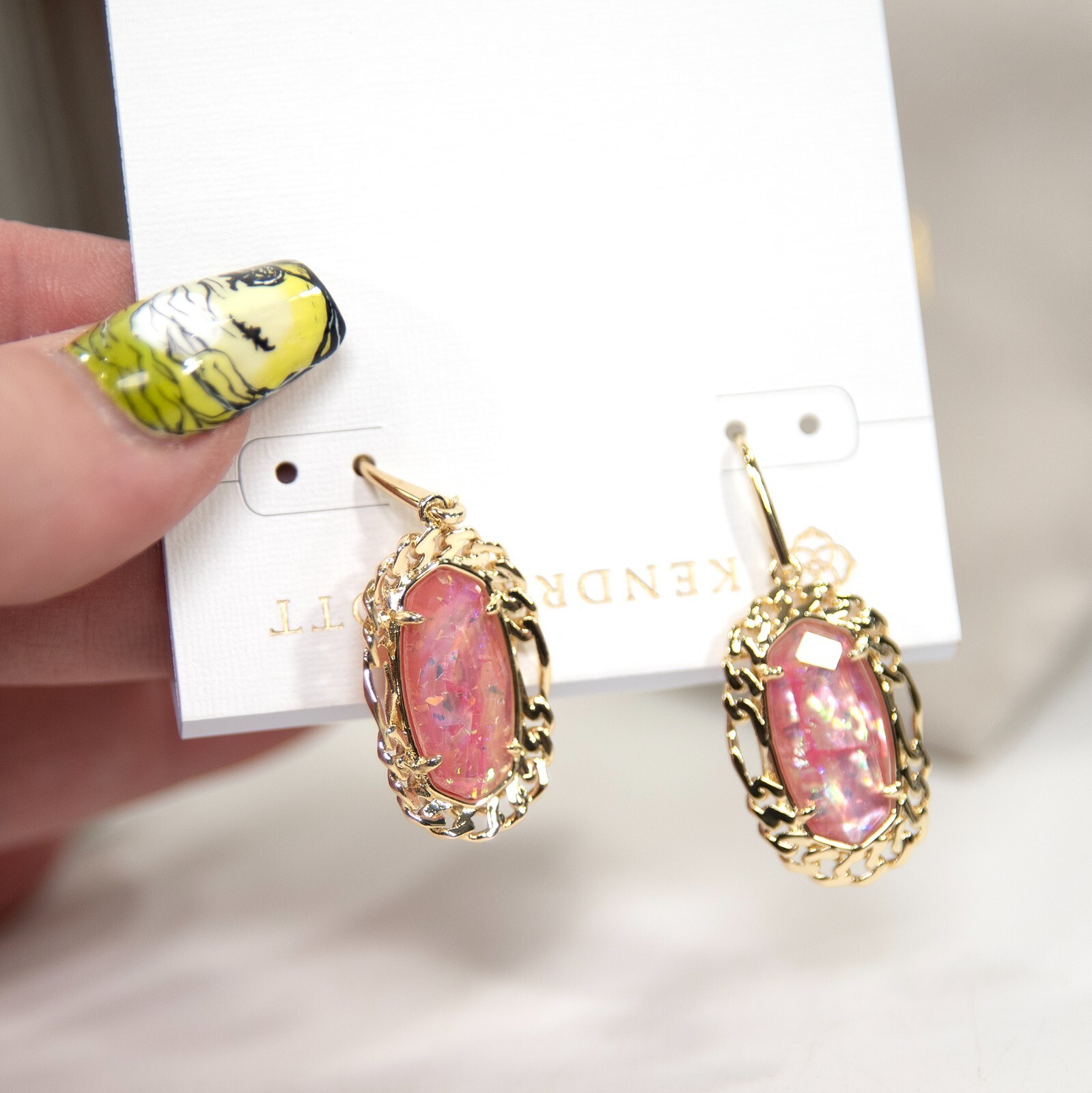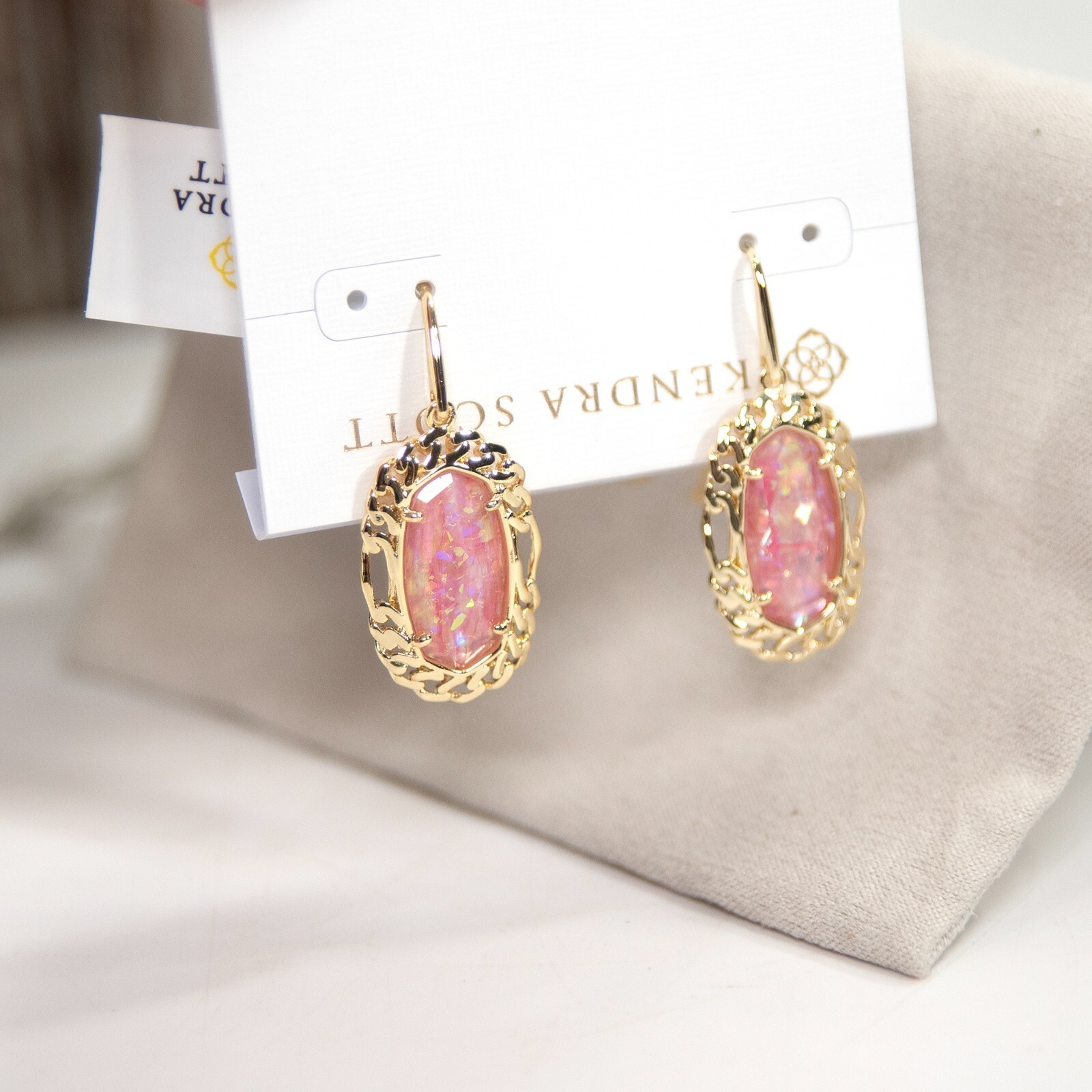 - Kendra Scott Dani Gold Figaro Frame Pink Iridescent Mother of Pearl Earrings NWT