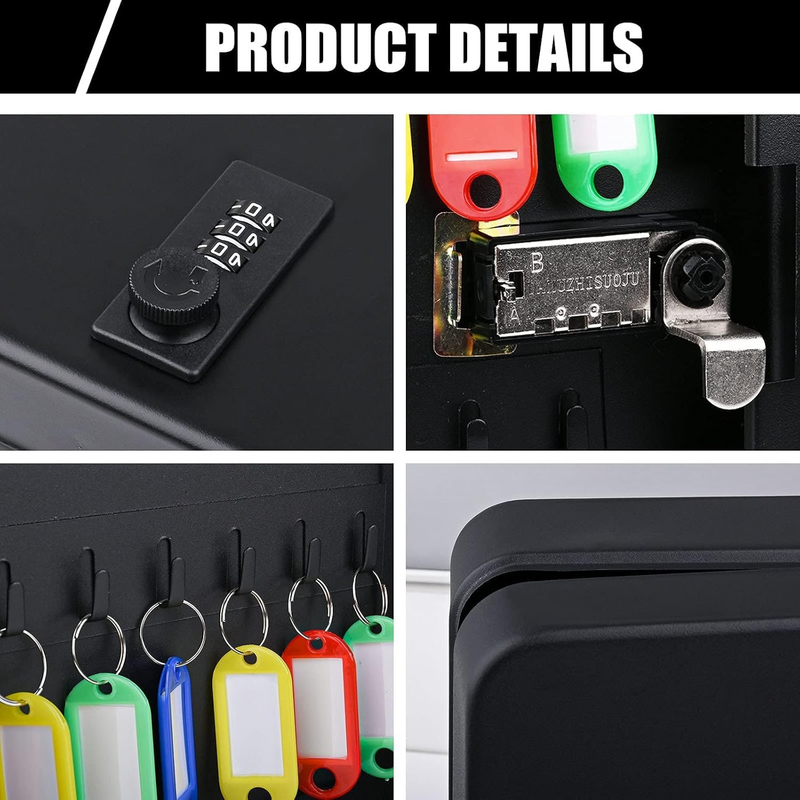 - Key Box Wall Mount with Combination Lock, 28 Key Hooks & Tags Key Organizer, St