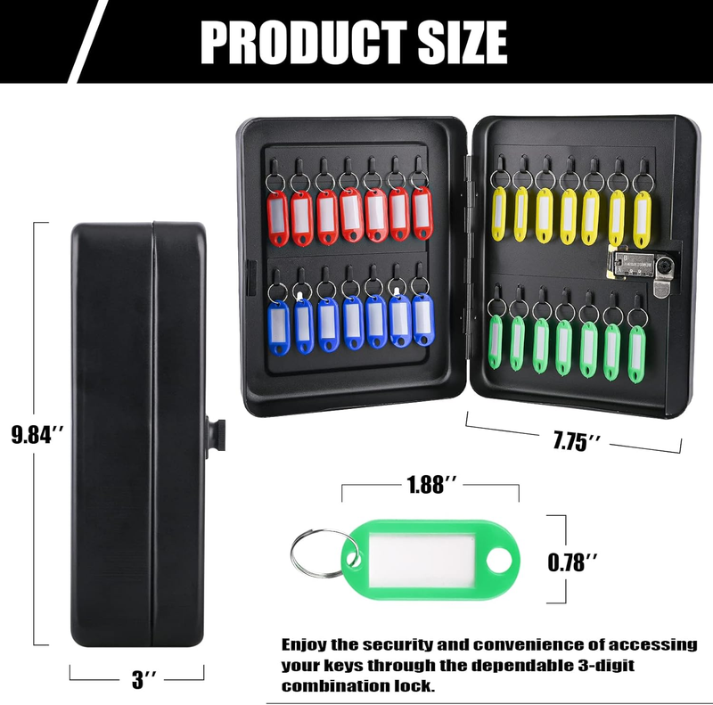 ?Functional?Many businesses need to store multiple keys on a daily basis.This key cabinet is ideal for home, office, property managers, apartment complexes, car lots, car dealerships, repair shops and so on