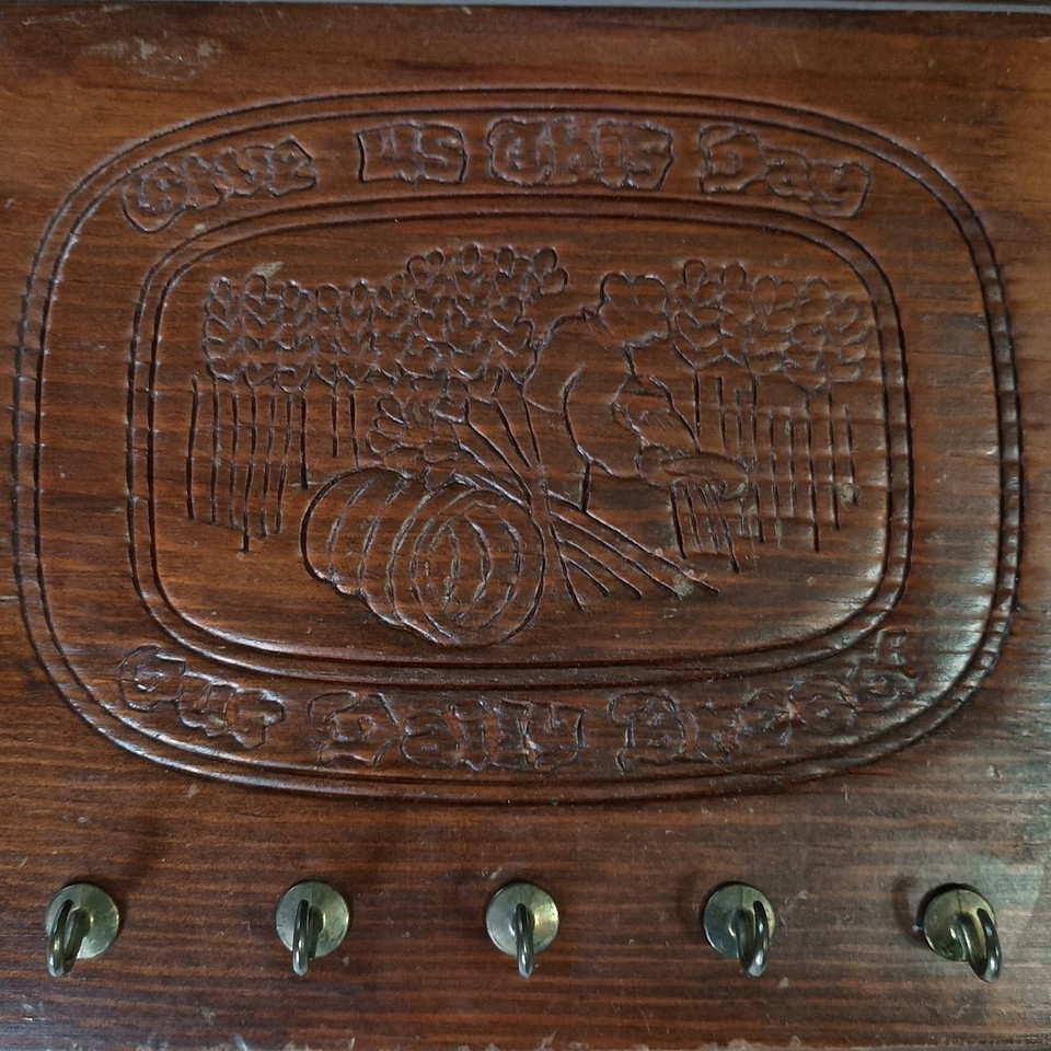 - Key Holder Embossed Wood "Give Us This Day Our Daily Bread" Retro Farmhouse