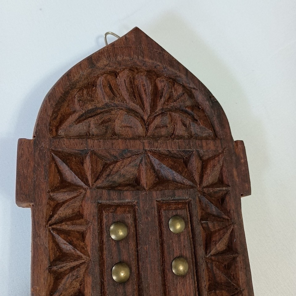 - Key Holder Small Zanzibar Door Hand Carved With 2 Key Hooks Decorative