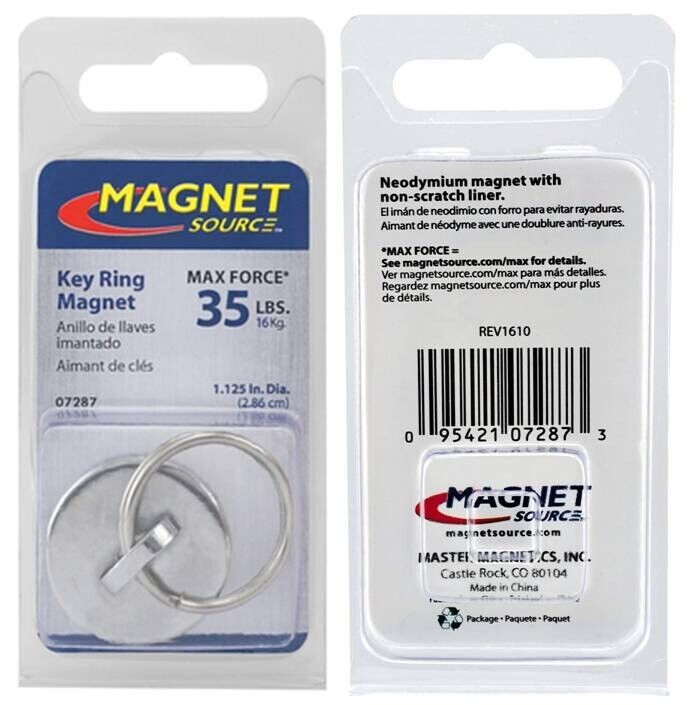 - KEY RING MAGNET 1-1/8" L X 0.25" W Neodymium 35-LB, Magnet Source 07287 (2-PACK)