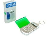 Great for on the go this keychain calculator in blue is perfect for doing quick math problems. The keychain calculator features a translucent flip-up cover and circular rubber buttons. It is approximately 2.75" x 1.50" x 0.50" in size and comes packaged in a box. Battery operated (included).