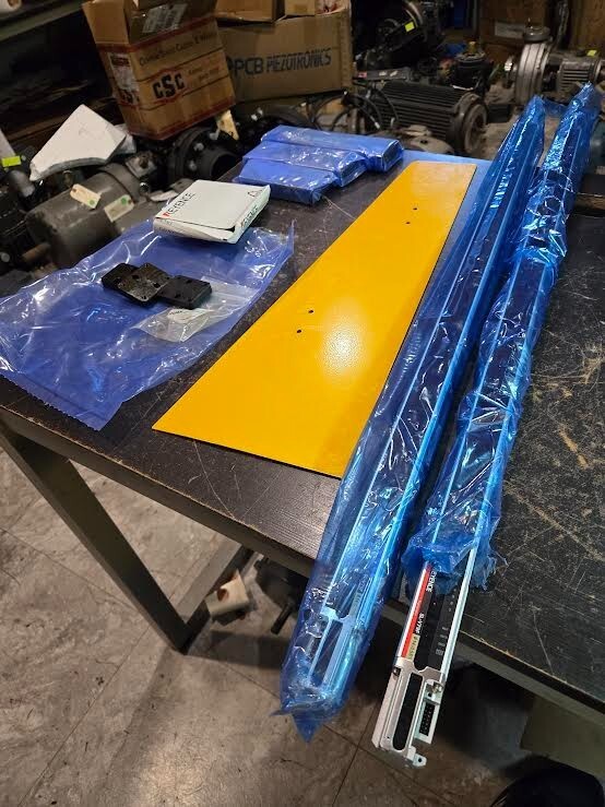 THE RECTANGULAR BLOCKS ARE METAL. SORRY THATS ALL I KNOW ABOUT THIS KIT.