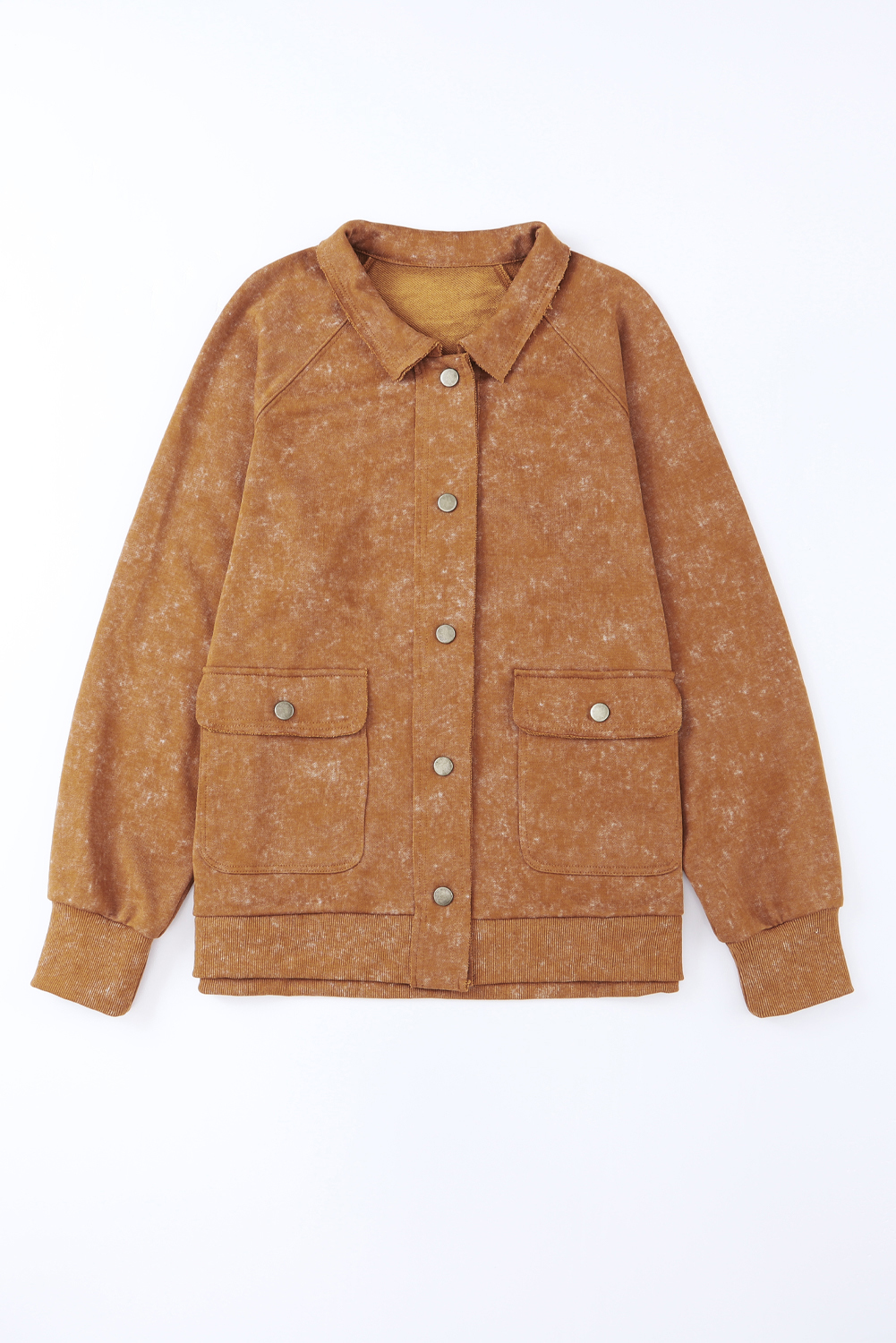 - Khaki Vintage Washed Flap Pocket Button Shacket