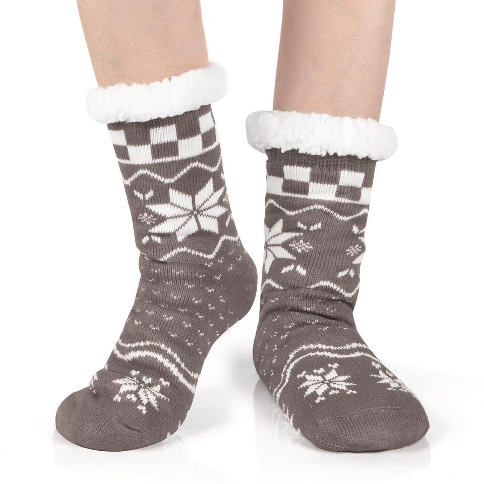 Slipper Socks with Grippers: Equipped with anti-slip rubber grippers on the bottom, these slipper socks for women are fleece-lined and thermal, preventing slips and slides on floors