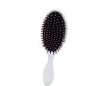 This oval hairbrush features nylon bristles that help smooth and detangle hair whether it's dry or wet. It has a contoured handle for an easy grip, along with a light teal color that adds a playful pop of style to her dresser or bathroom essentials.