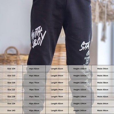 Size: 140, Height: 140cm, Pants Length: 85cm, Hips: 82cm, Waist: 76cm