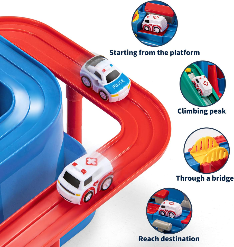- Kids Race Track Toys with 3 Mini Cars - Puzzle Rail Car Adventure Playset for 3-