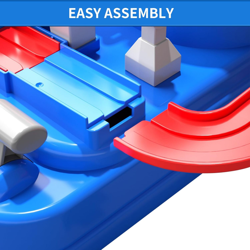 Enhance Thinking and Innovation: This race tracks set combine with suitable size, bright color and 8 different challenges, which can practice children's coordination, thinking ability and operation skills. The 2-in-1 track cooperative game brings more fun