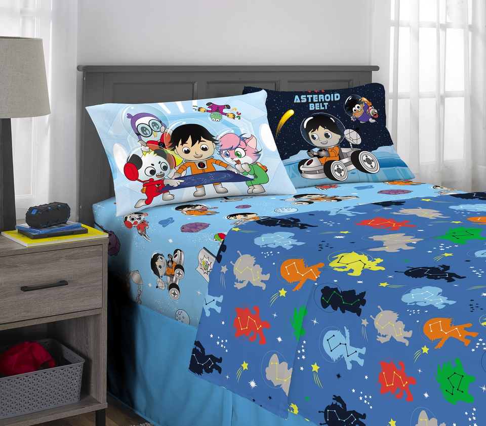 100% Microfiber ? RYAN'S WORLD RED TITAN DESIGN ? FUN AND COLORFUL: Make bedtime more fun with bright colors and bold artwork. Young fans will love to cuddle up with their favorite characters and parents will appreciate the quality and style of this cozy sheet set. ? SUPER SOFT BED SHEETS: Crafted for comfort, the microfiber material is super soft and long lasting, keeping kids cozy night after night. This high-quality sheet set is an enduring choice that's sure to become a favorite in any collection. ? EASY CARE: You can throw the sheet set into the washer and dryer without worrying about the color fading or the need for ironing. The material is wrinkle-resistant making it a great choice for any child's room. ? 3 PIECE TWIN SIZE SET INCLUDES: ? 1 fitted sheet 39? (W) x 75? (L) and fits 10-12? deep mattress. ? 1 flat sheet 66? (W) x 96? (L). ? 1 standard pillow case 20? (W) x 30? (L). ? Designed to fit a standard twin size bed. ? 4 PIECE FULL SIZE SET INCLUDES: ? 1 fitted sheet 54? (W) x 75? (L) and fits 10-12? deep mattress. ? 1 flat sheet 81? (W) x 96? (L). ? 2 standard pillow cases 20? (W) x 30? (L). ? Designed to fit a standard full size bed.